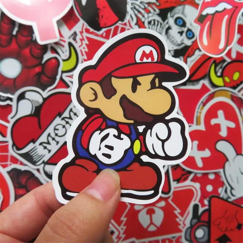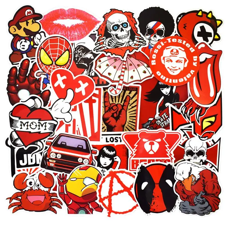 50 шт. смешанные красные наклейки с граффити для ноутбука, автомобиля, мотоцикла, чемодана, скейтборда, рюкзака, чемодана, наклейки из ПВХ, водонепроницаемые наклейки
