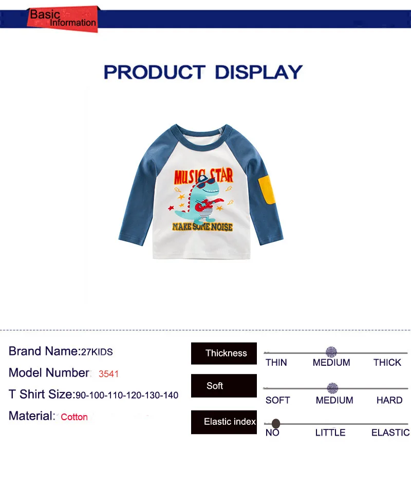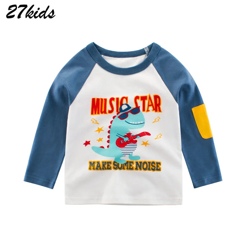 27kid Baby Boys Футболки Осень С Длинным Рукавом Дети Динозавр Хлопок Толстовка Дети Мальчики Рубашки Одежда Одежда для Мальчиков