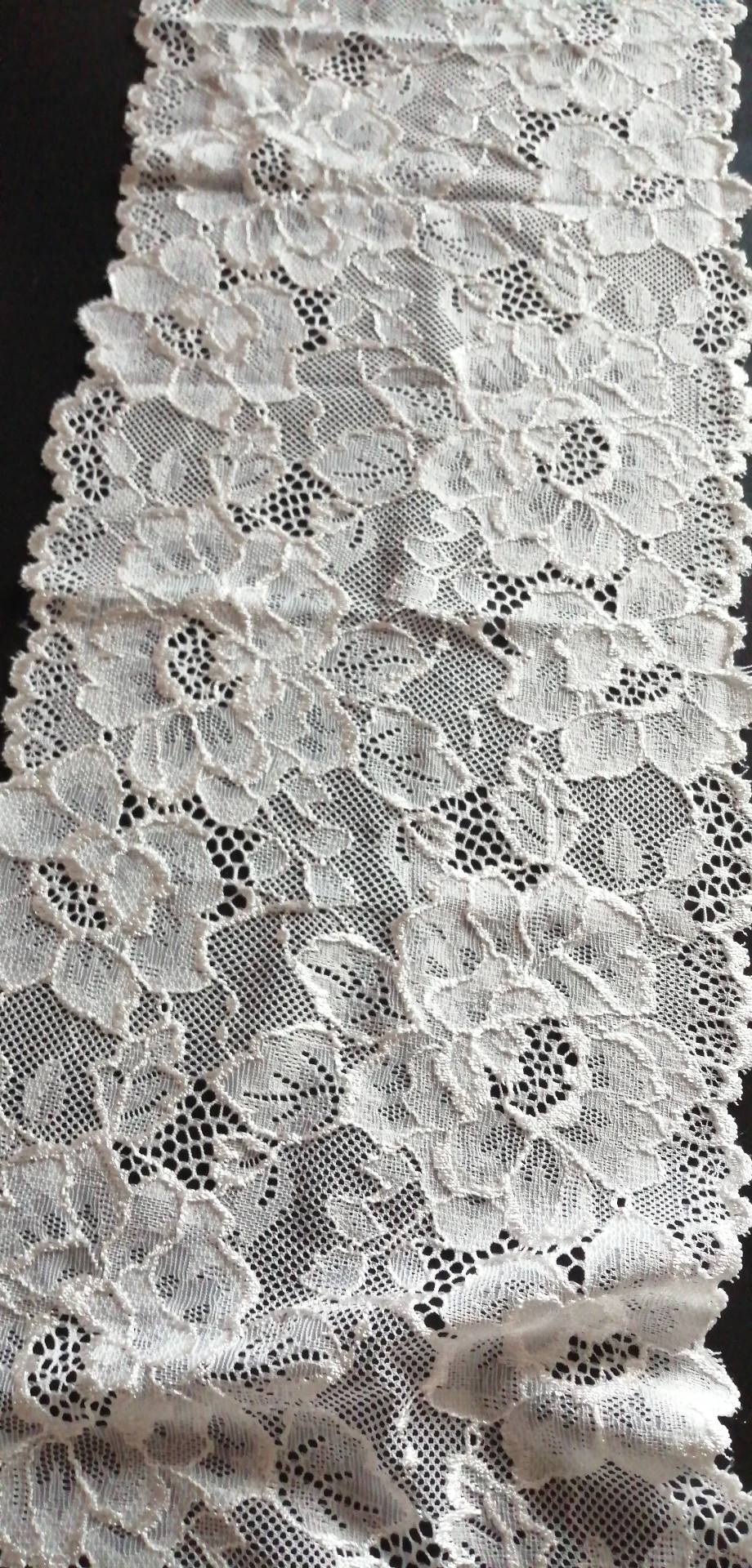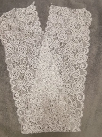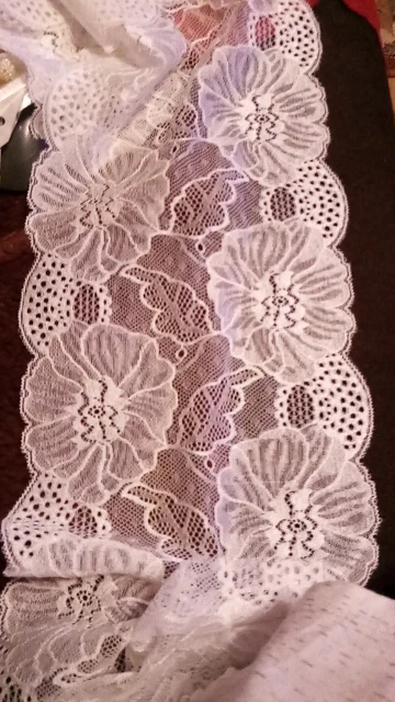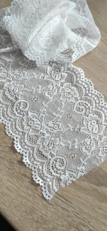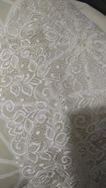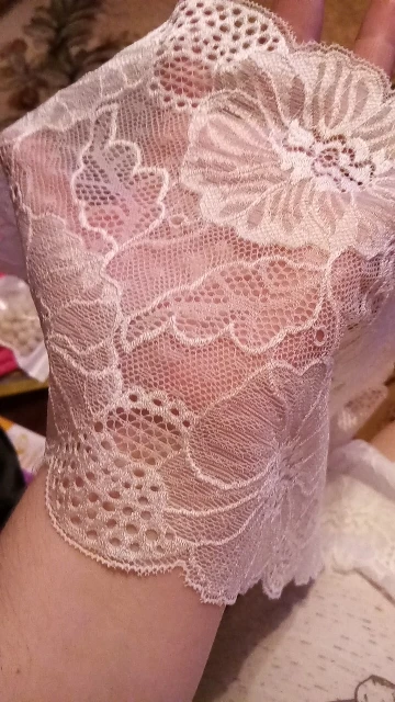 Фото не способно передать красоты этого кружева! Очень красивое! Хорошо тянется, шелковистое. Я довольна, что заказала именно эти кружева у этого продавца. Спасибо. Рекомендую к покупке.