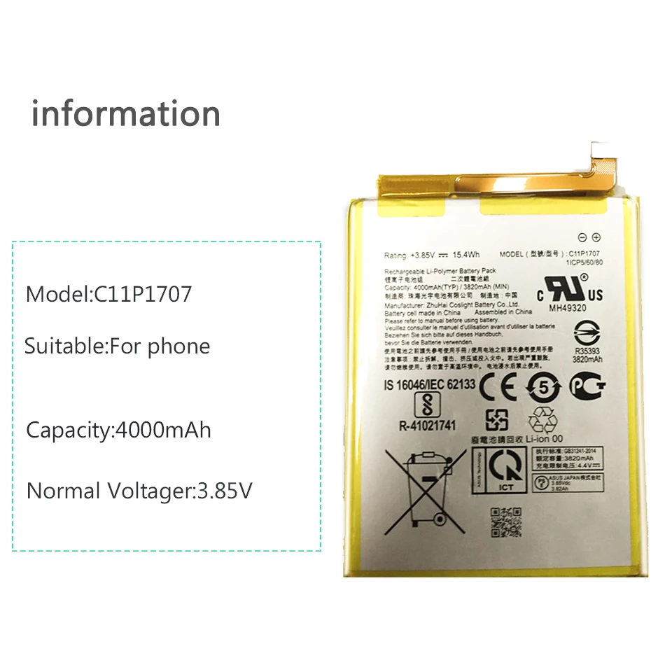 Безопасная стабильная запасная батарея для мобильного телефона C11P1707 4000 мАч для ASUS C11P1707 прочный литий-полимерный аккумулятор