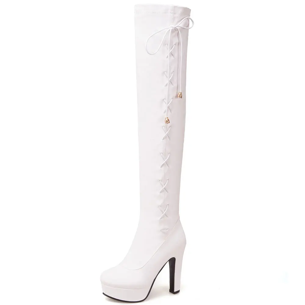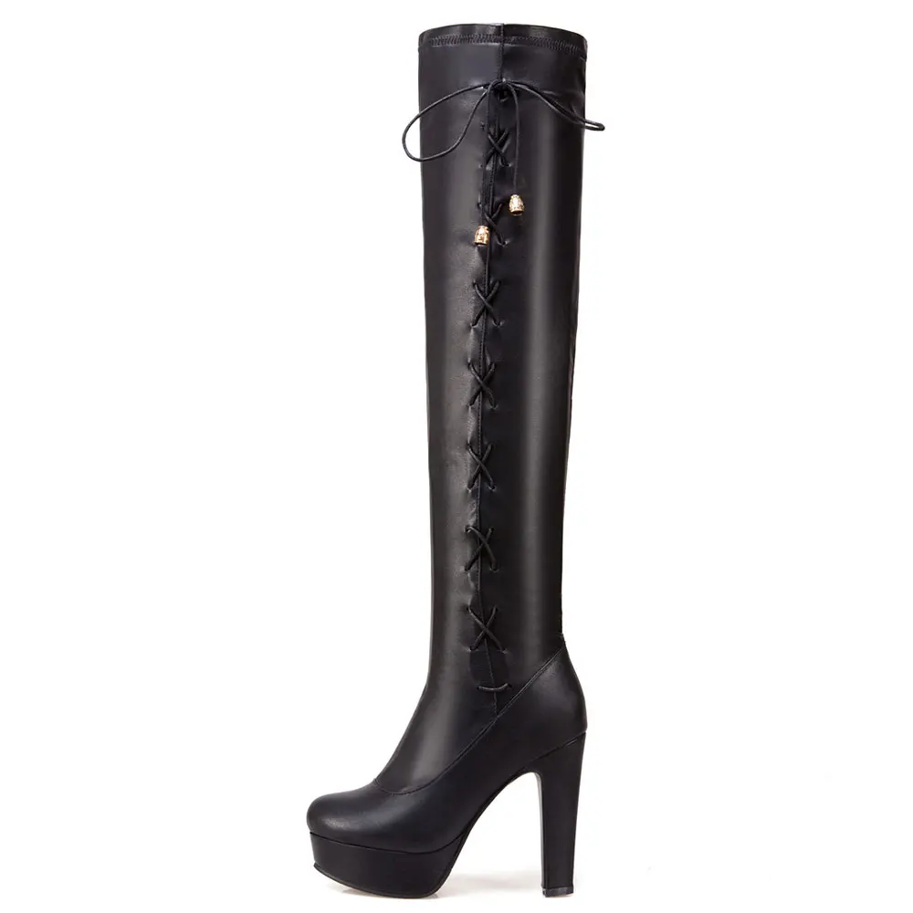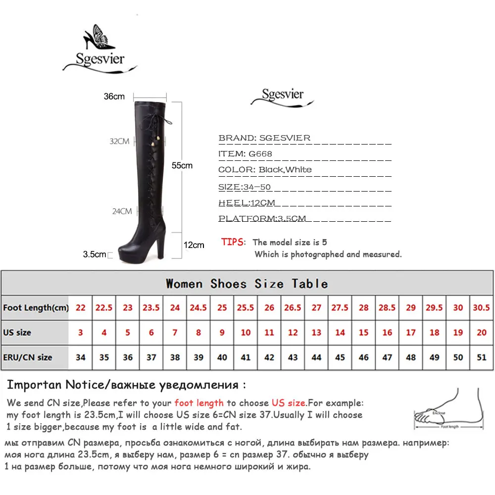 Sgesvier/Новинка 2019 года; Модные ботфорты выше колена; Теплые осенне-зимние сапоги на шнуровке с круглым носком; Обувь на толстом высоком каблуке; G668