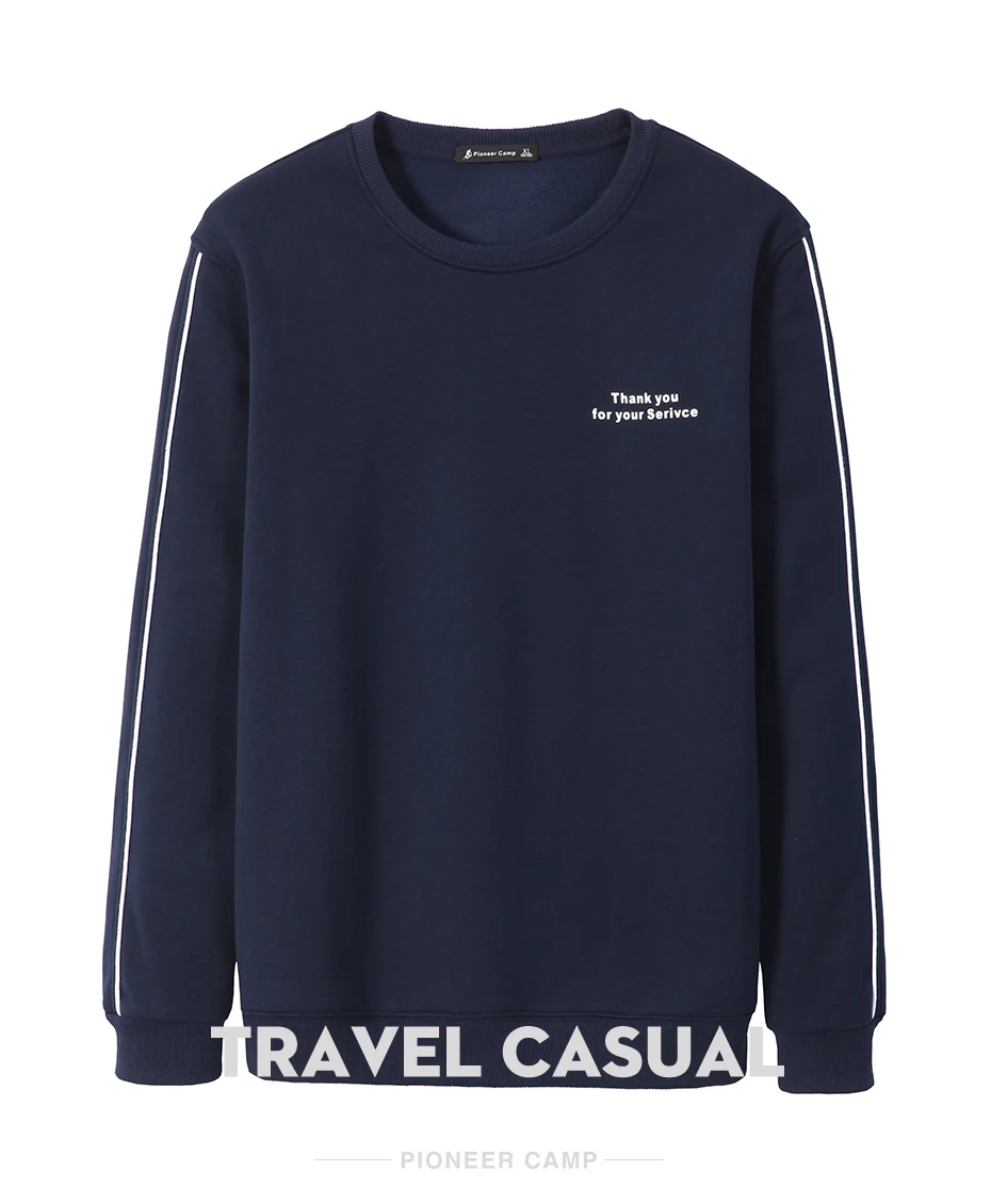 Мужская Флисовая Толстовка Pioneer Camp, темно-синяя хлопковая толстовка с круглым вырезом, с надписью, в полоску, осень 2020