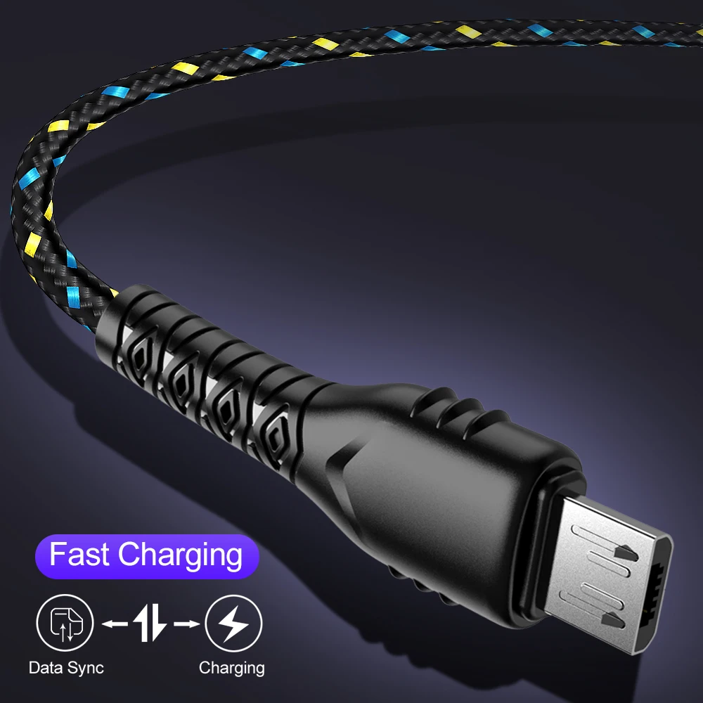 Кабель Micro USB для быстрой зарядки и передачи данных, нейлоновый, мобильный телефон А, для Samsung, Xiaomi, Huawei, LG, планшетов, Android, кабели Micro USB
