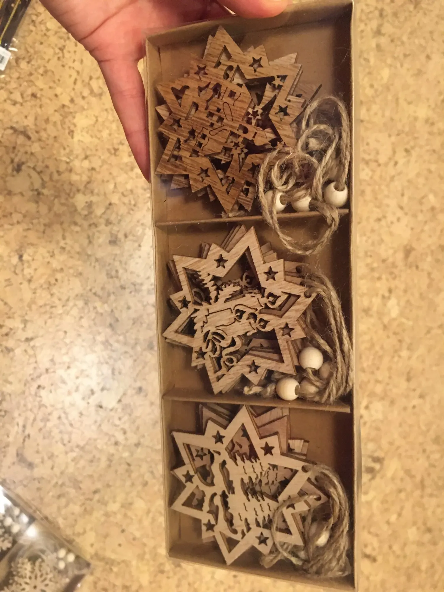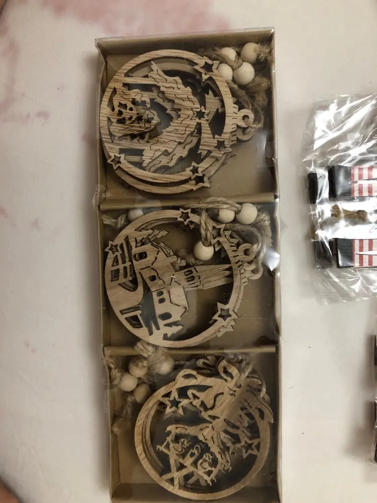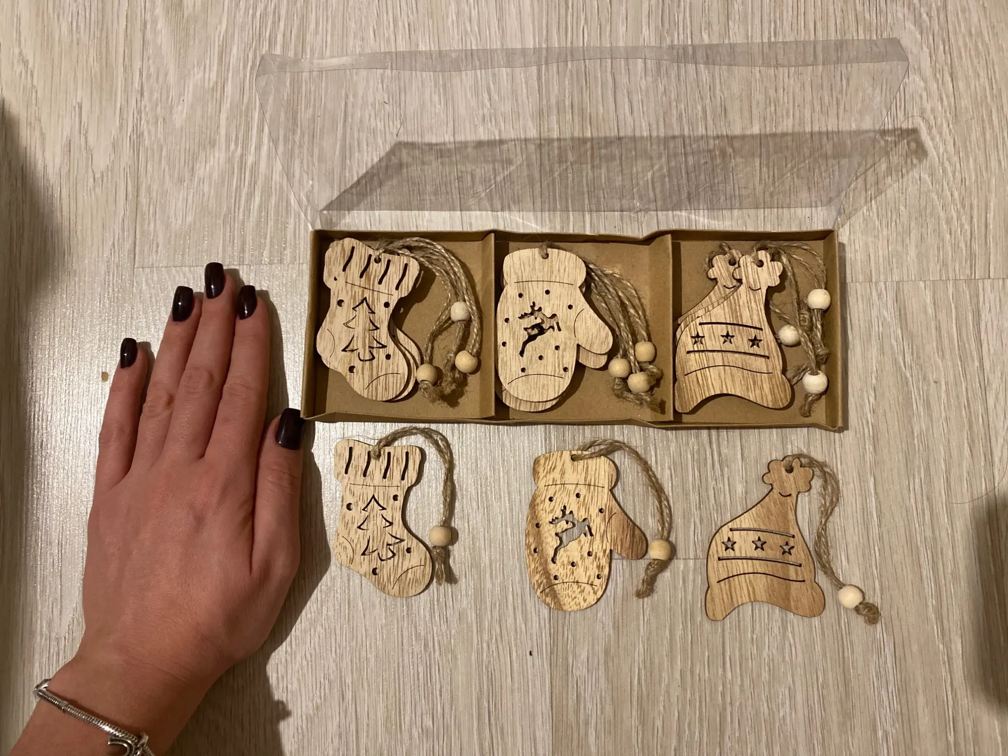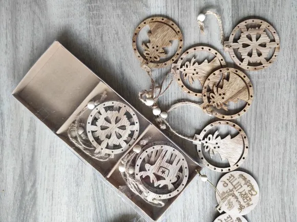 заказал с Китая 25.11.20. В Южно-Сахалинске забрал на почте 25.12.20г. Обычные деревянные ёлочные украшения. Пахнет деревом, дерево финишно обработано, ничего не сломано. Пойдет и в качестве подарка. Взял две пачки разные! продавца и товар рекомендую однозначно!!!