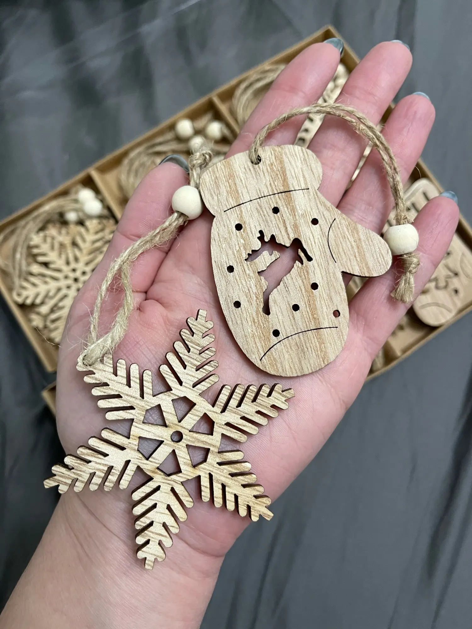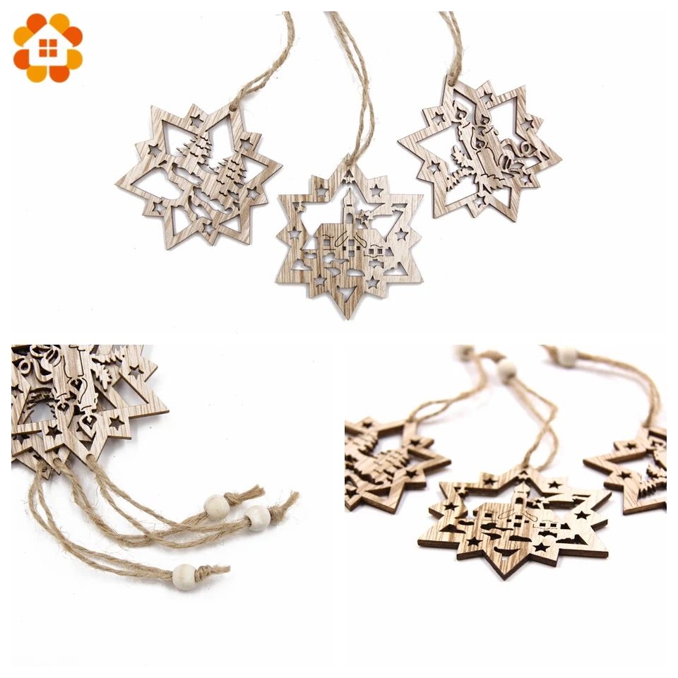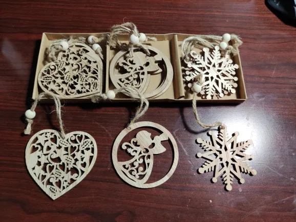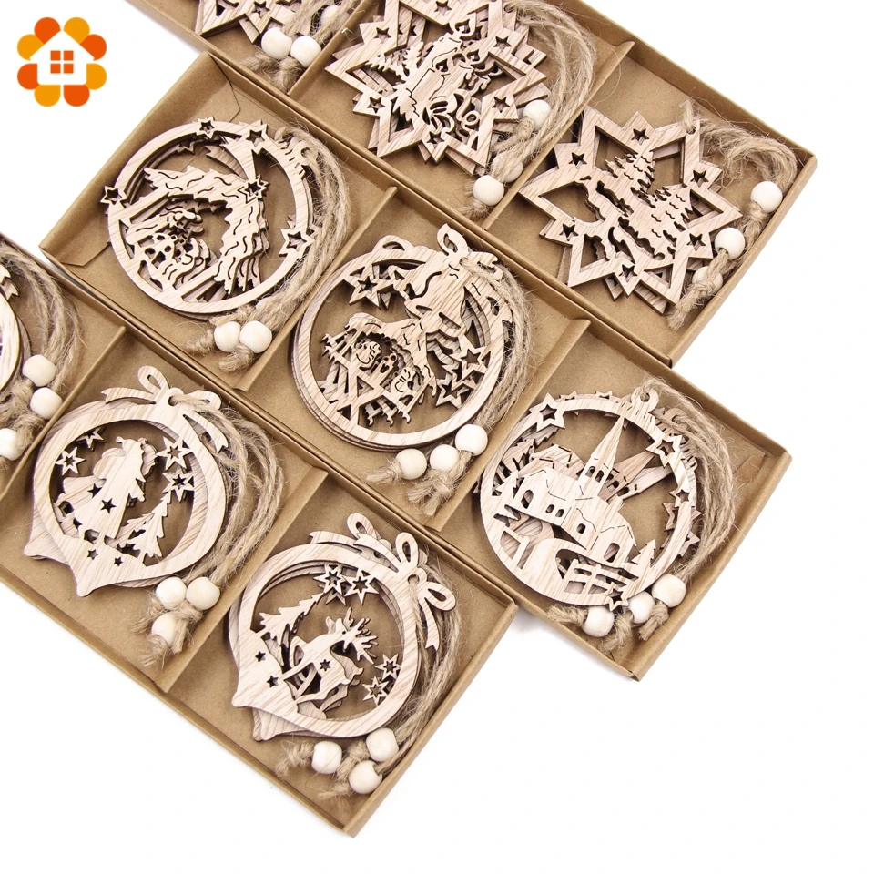 Винтажные полые украшения для рождественской вечеринки, 12 шт.кор., деревянные подвески, украшения, украшения для рождественской елки, Подвесные Подарки