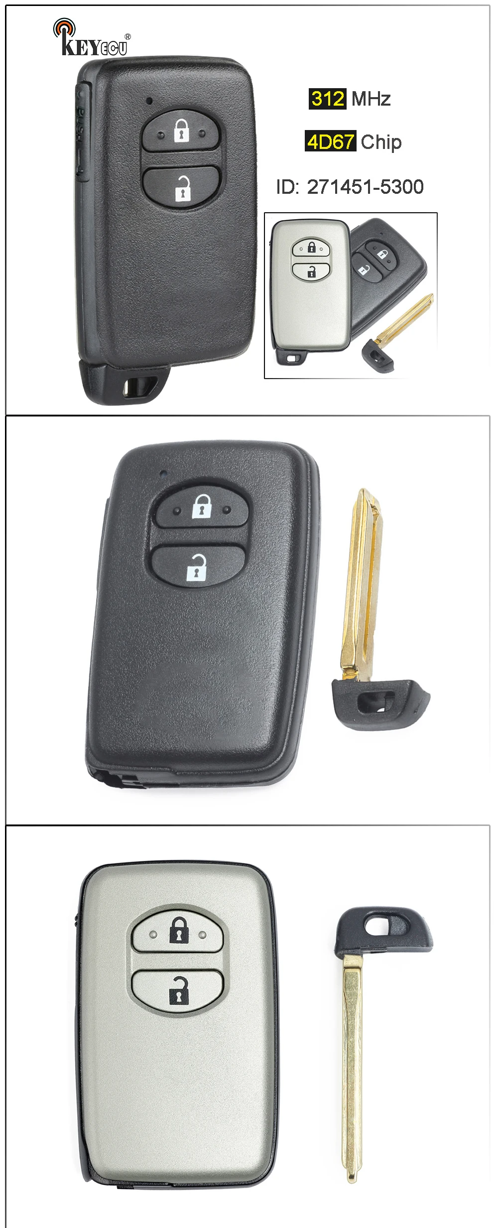 KEYECU 314,3 МГц 4D67 чип 271451-5300 Смарт 2 кнопки дистанционный ключ-брелок от машины для Toyota Prius Aqua IQ Ractis Belta Vitz Corolla Axio