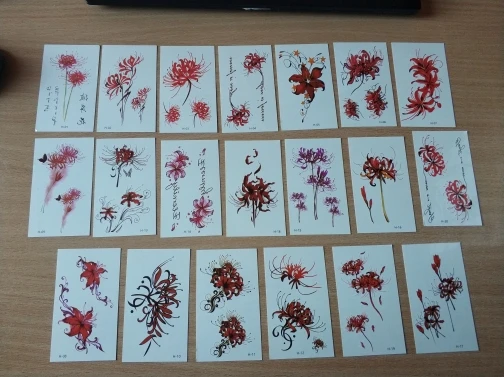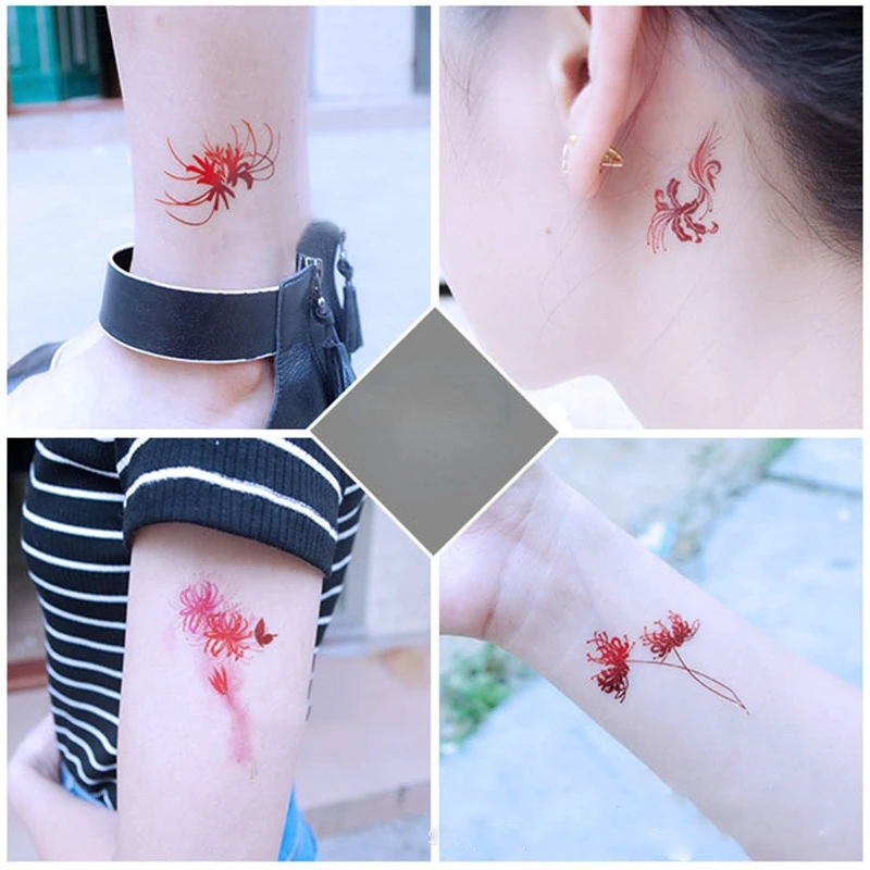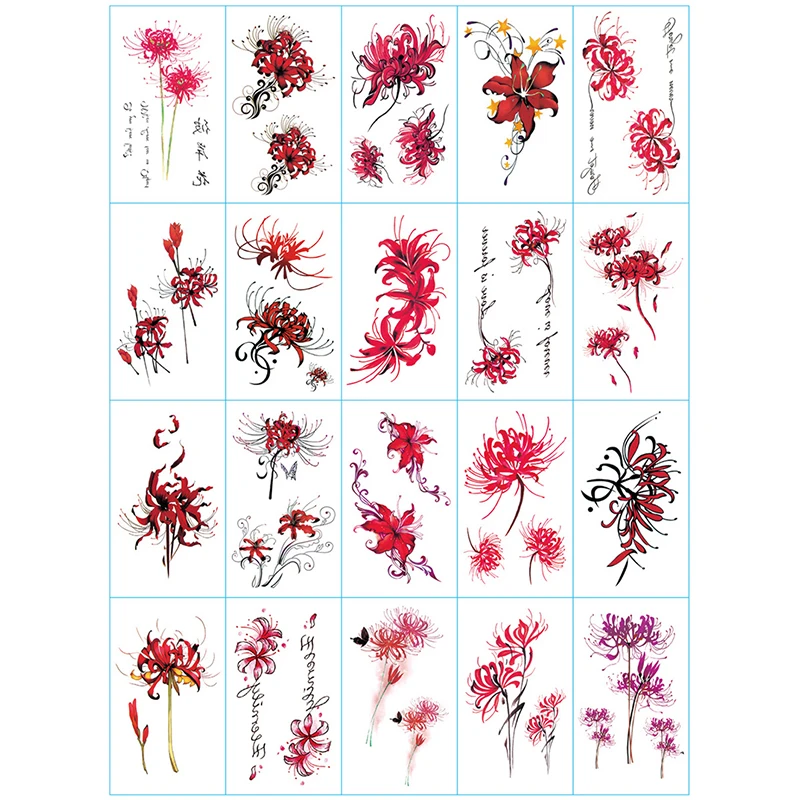 Временные татуировки 20 шт., наклейки и переводки с красными цветами, женские татуировки и боди-арт, водостойкие Временные татуировки, временные татуировки