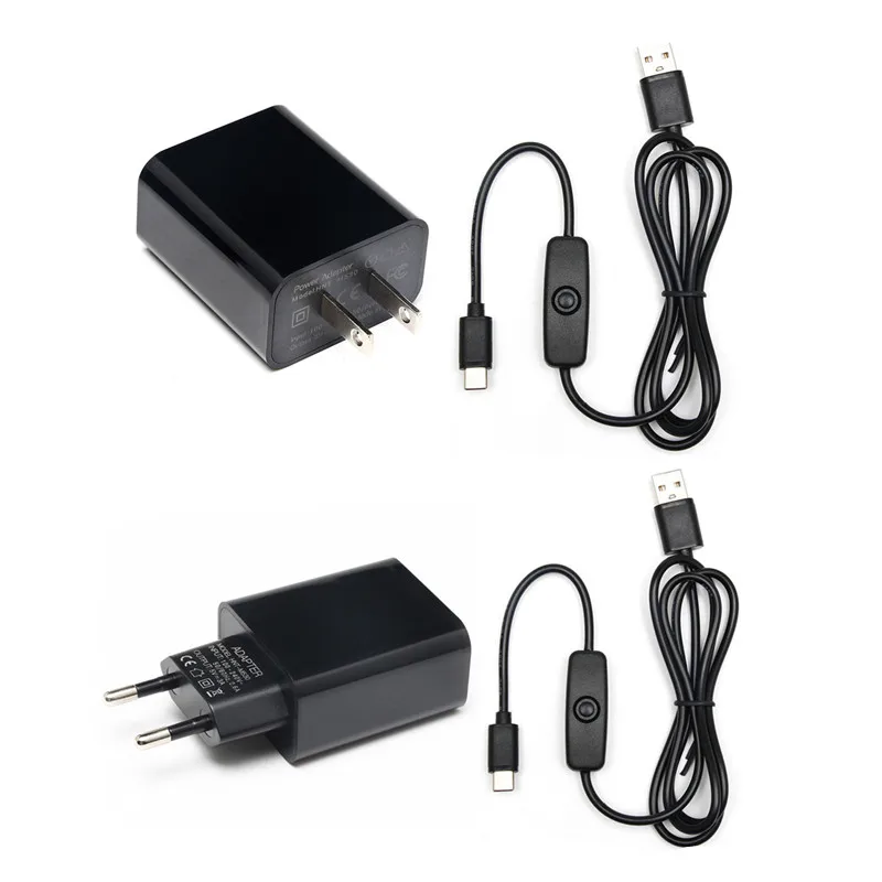 Адаптер питания для Raspberry Pi, 5 В, 3 А, С переключателем включениявыключения, зарядное устройство USB для ЕС, США, для Raspberry Pi 4, Модель B, 3B, 3B +