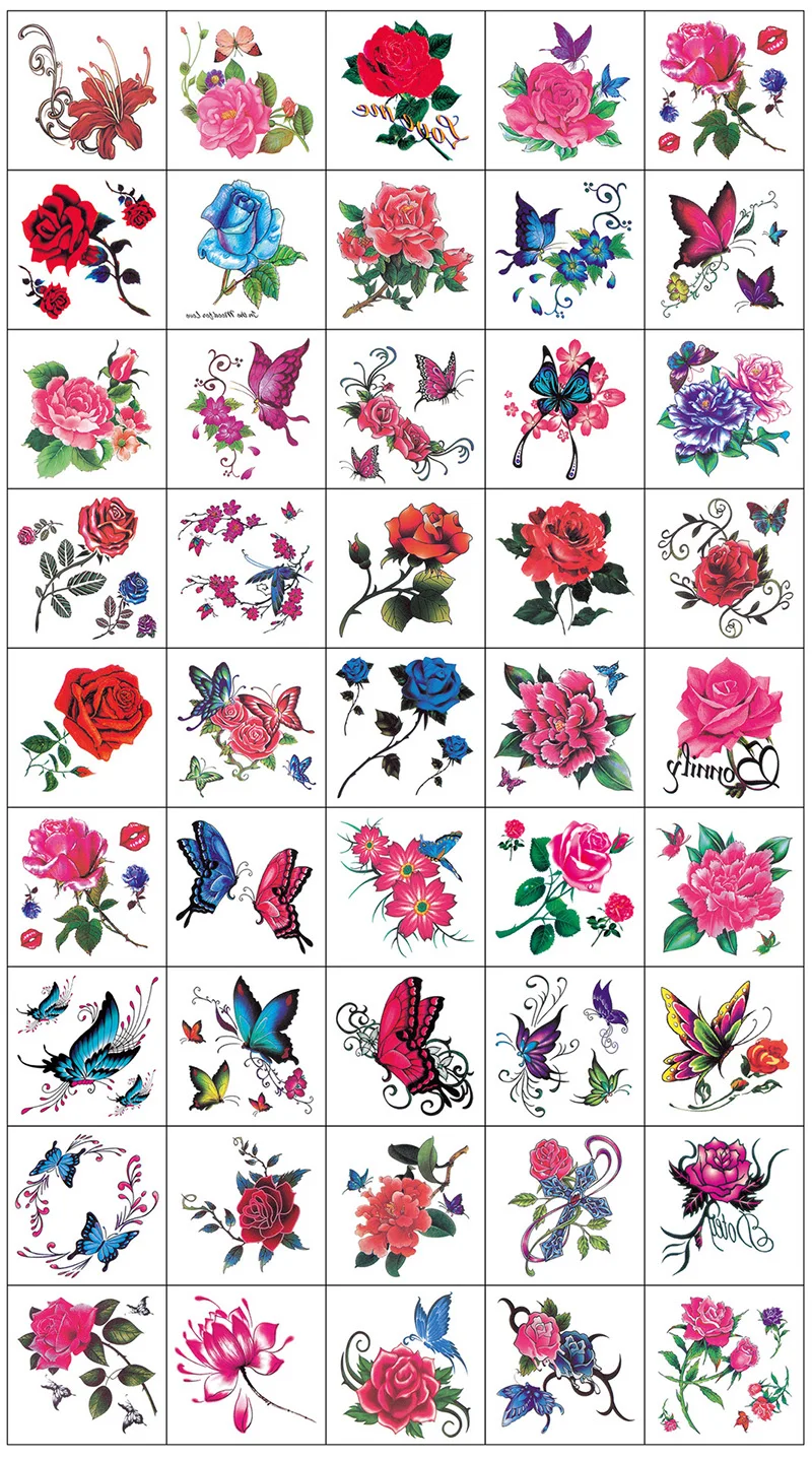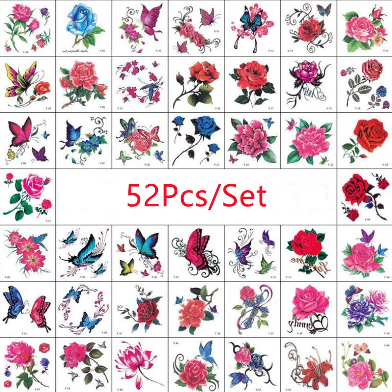 52 шт.компл. не повторяющиеся временные татуировки с цветами, бабочками, водостойкие консилеры для боди-арта, наклейки, одноразовые временные татуировки