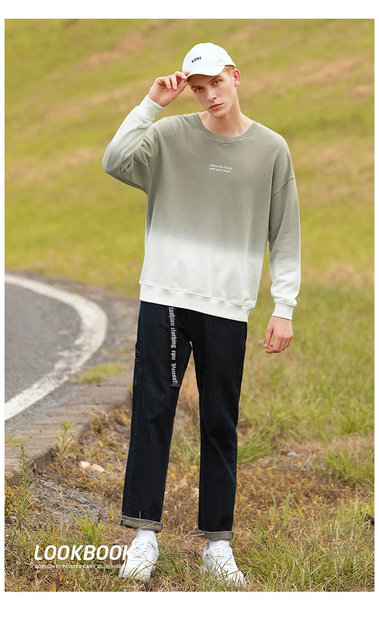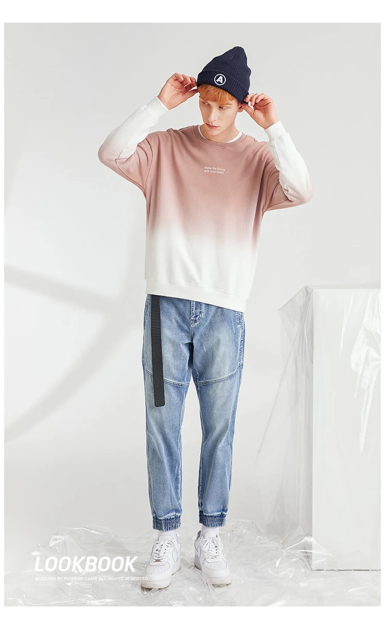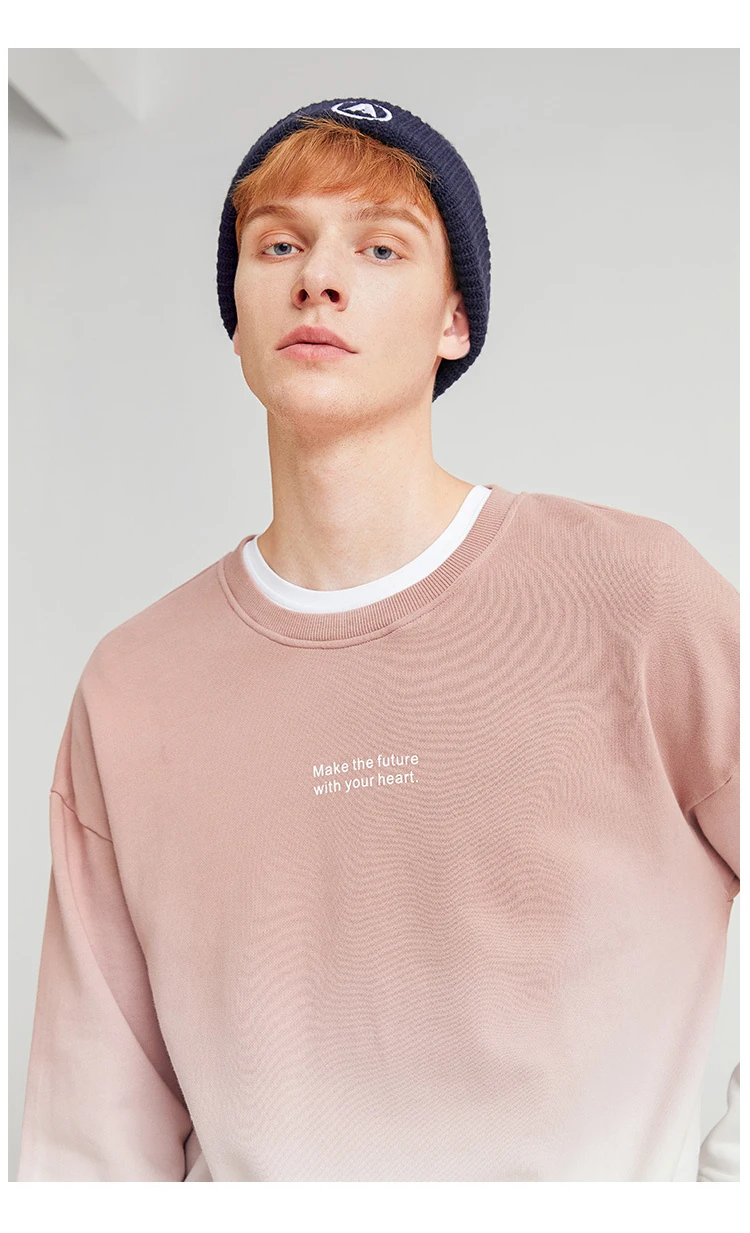 Пионерский лагерь толстовка с градиентной расцветкой розовый серый вырез лодочкой буквенный узор повседневные хлопковые мужские толстовки AWY902325T