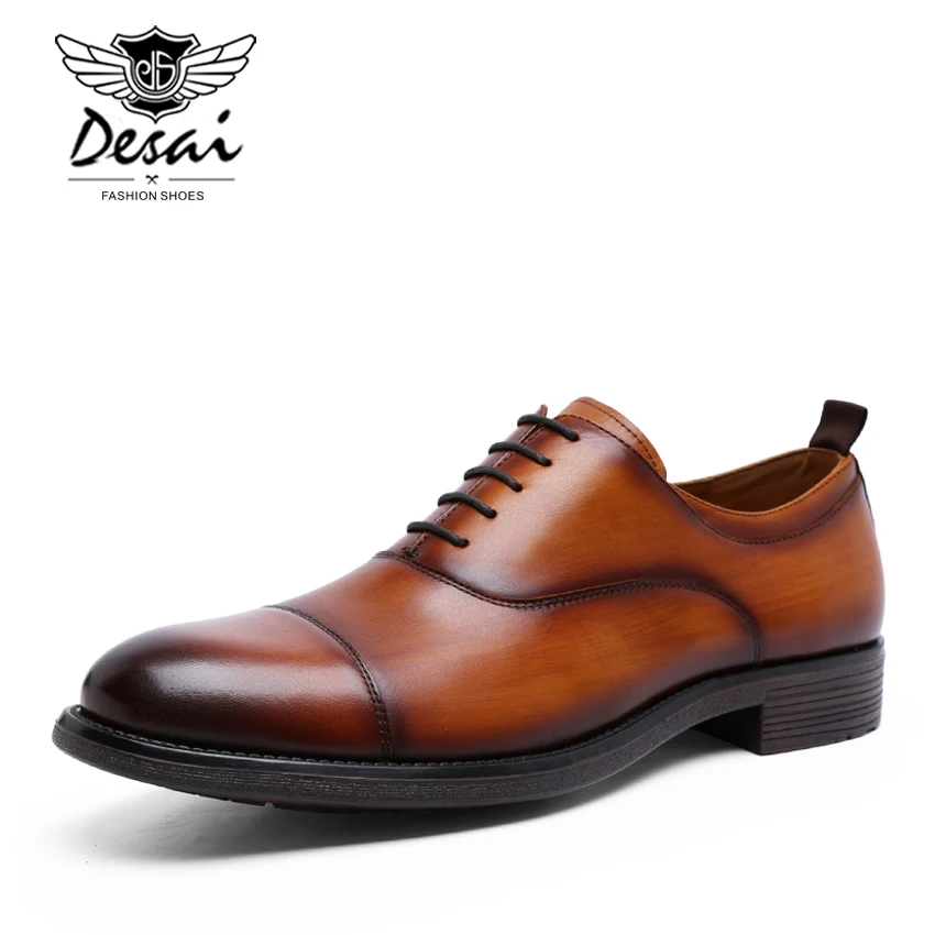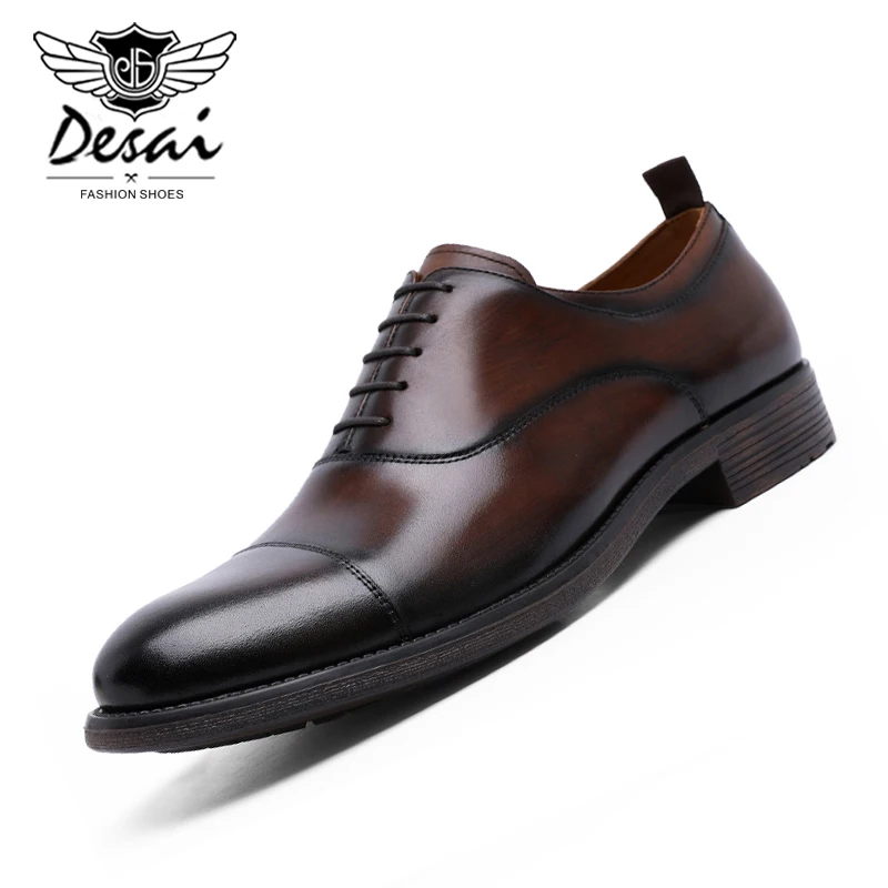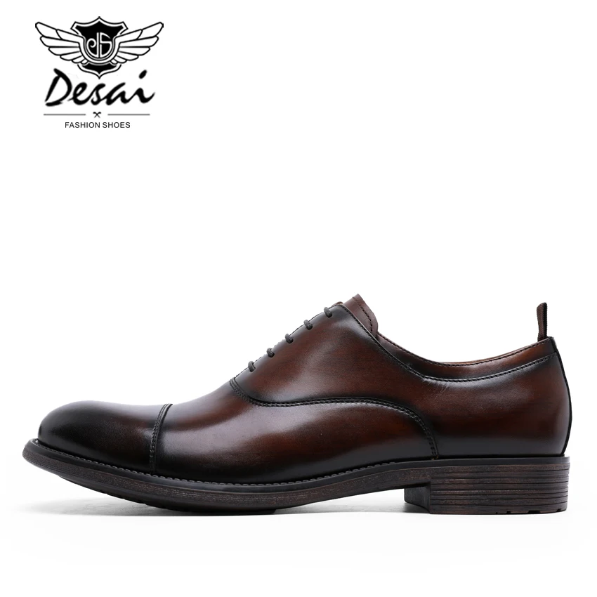 Классические туфли DESAI из натуральной кожи, градиентные мужские туфли в стиле ретро, туфли-оксфорды из лакированной кожи, европейские размеры 38-47