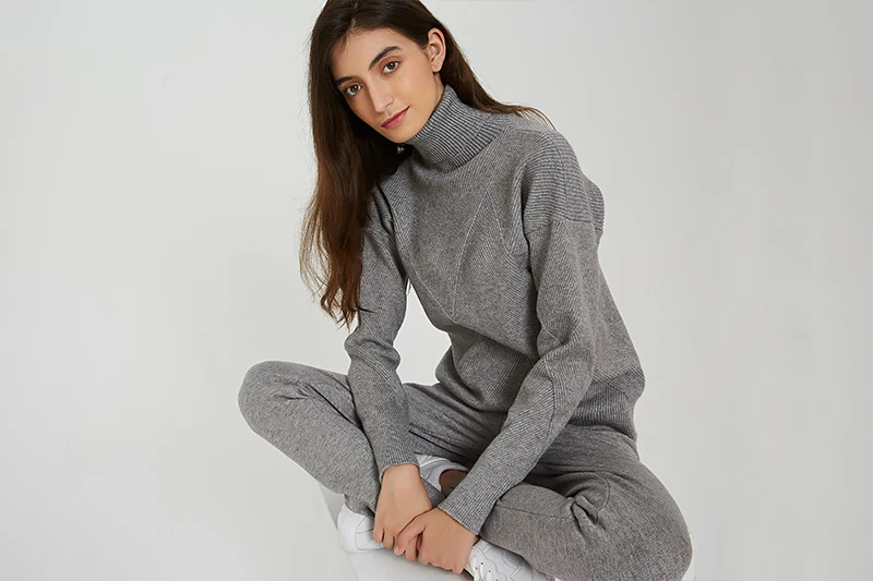 Wixra Женские повседневные трикотаж костюм комплект с длинным рукавом свитер брюки штаны кэжуал база базовая тренды повседневная 2019 Зима весна осень новые стильные кэжуал