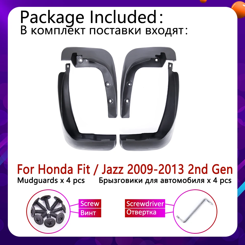 Брызговики для Honda Fit Jazz 2009, 2010, 2011, 2012, 2013, 4 шт.