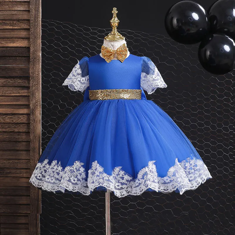 Детское кружевное платье-пачка с большим бантом и блестками