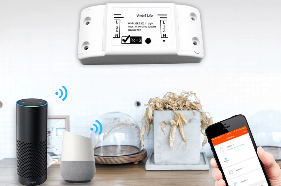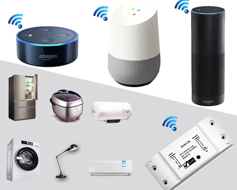 С Google Home, Amazon Alexa. Вы можете сказать: «Алекса, включи светильник», ваш умный помощник поможет вам в этом.