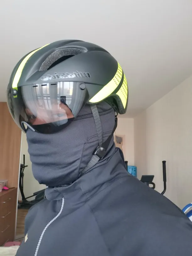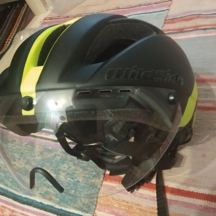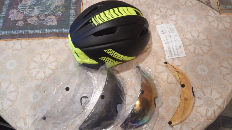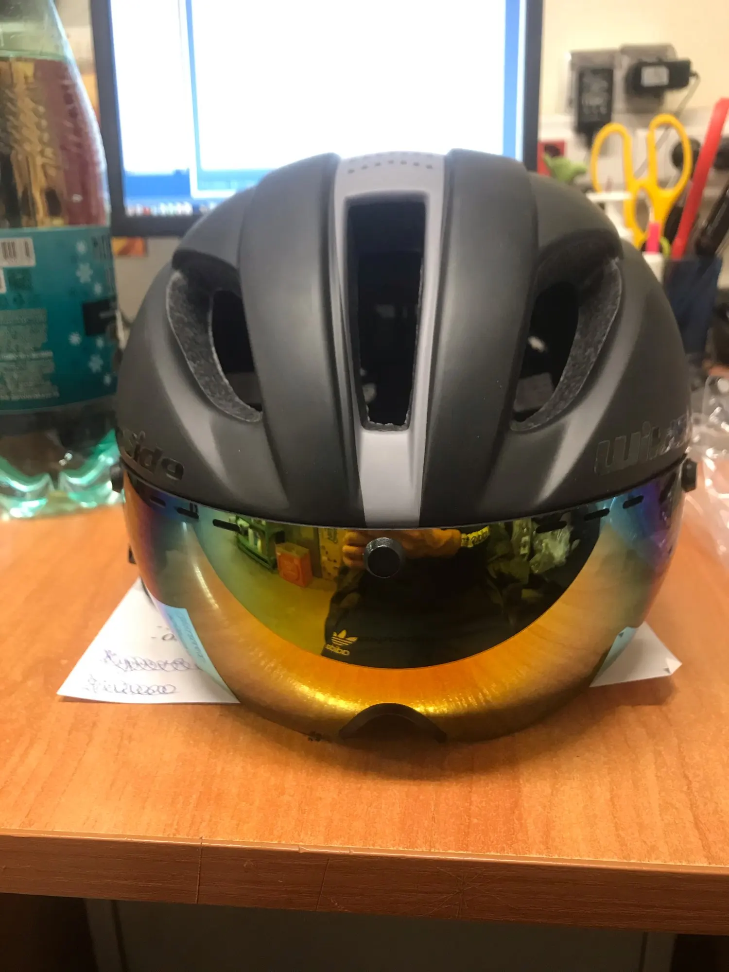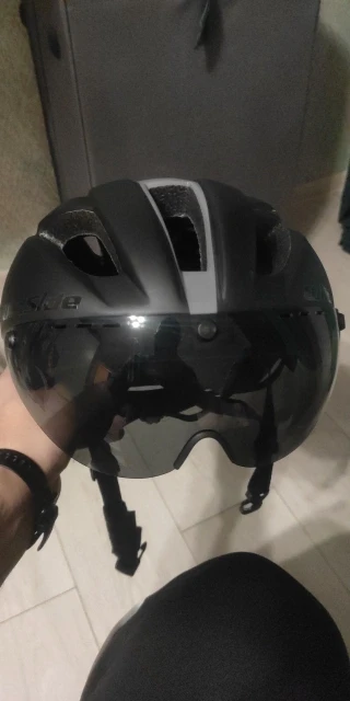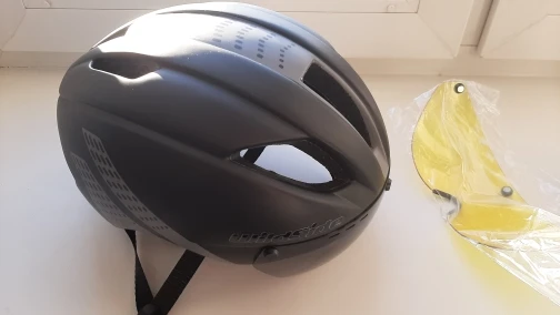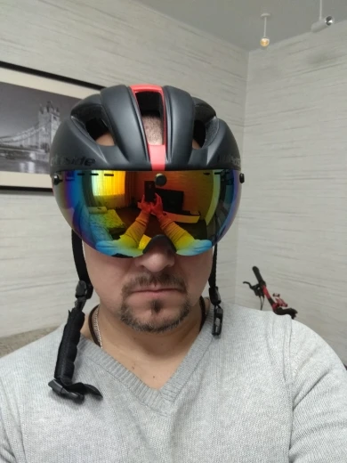 Хороший велошлем. Брал специально с визором для поздней осени - зимы (дождь снег). Гораздо комфортнее ехать в непогоду. Рекомендую, с одной оговоркой, если вы носите очки с диоптриями, как я, возможно будет не очень удобно, если очки будут близко к визору (зависит от размеров очков, формы головы). В этом случае для зимы больше подойдет модель шлема с несьемным визором. Упакован супер надежно. Доставка молниеносная.