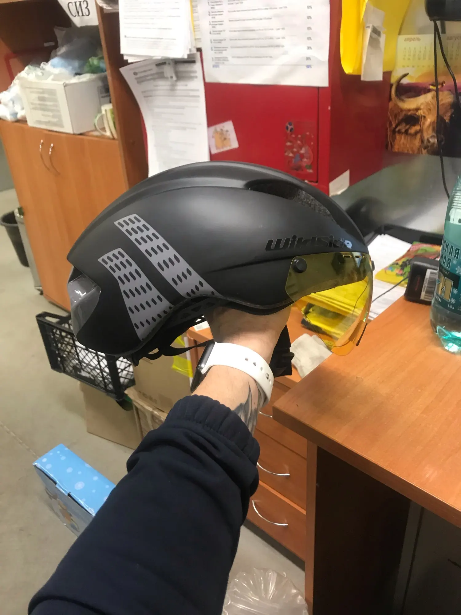 Шлем понравился на вид,вроде бы крепкий, подошёл по размеру,у мужа голова 58 см в окружности,стекла цепляются на магниты отлично,держатся вроде крепко,еще не использовали по назначению,это будет уже весной,сейчас холодно ездить на велосипеде.Пришел Новой почтой,упакован отлично,все в целости,пришел за месяц в Николаев.