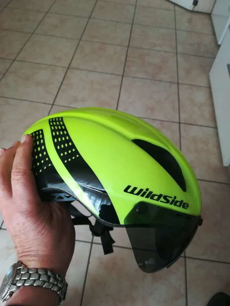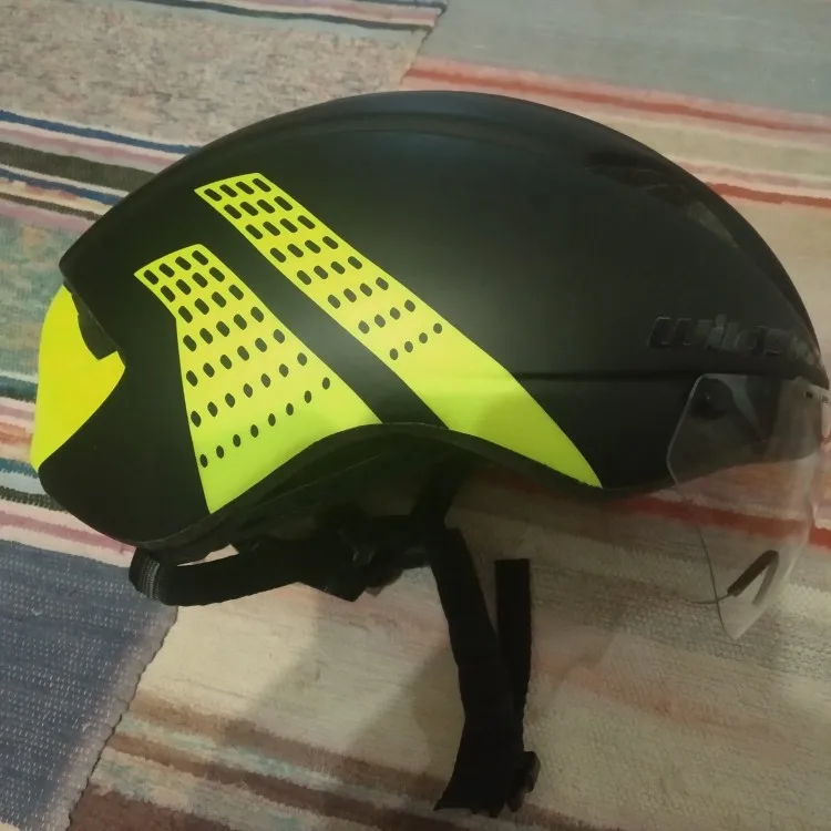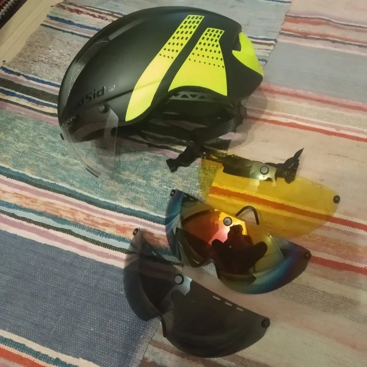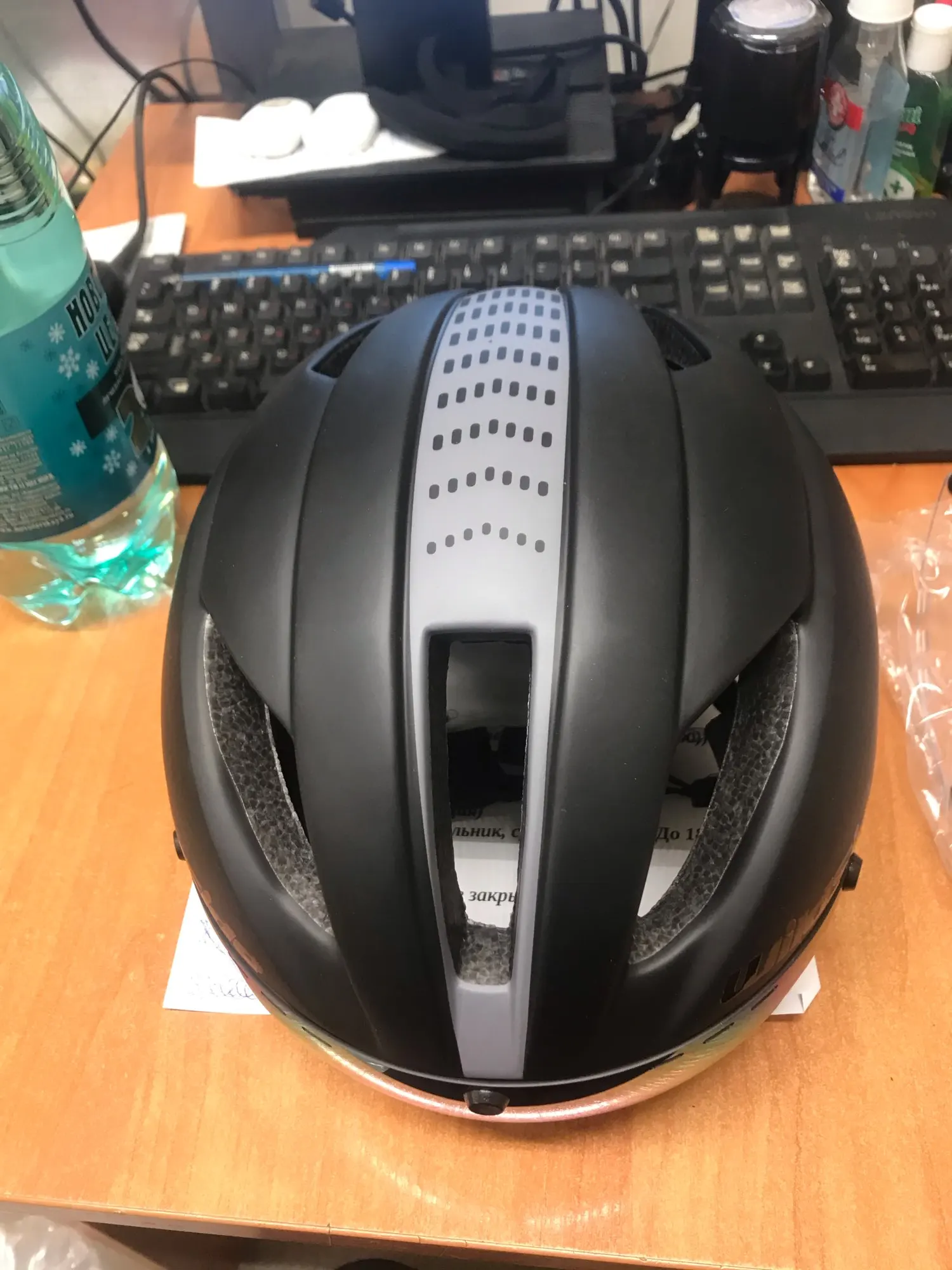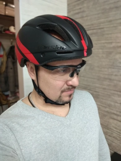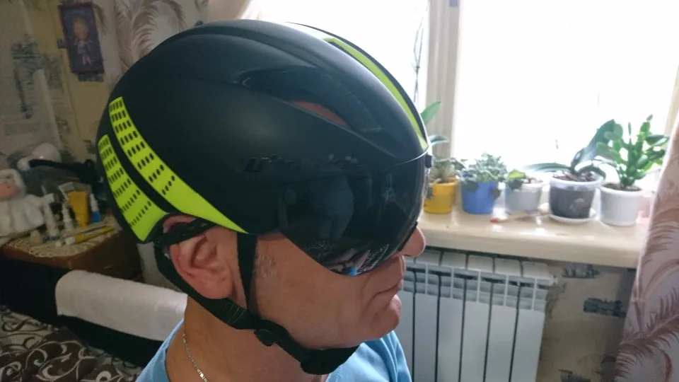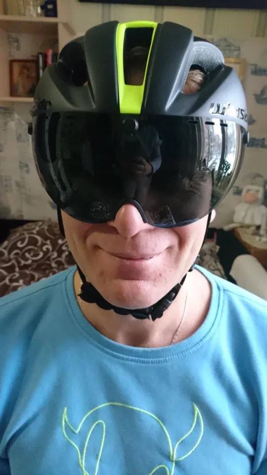 хороший аэрошлем, яркий красивый и заметный, шикарный комплект визоров на все случаи жизни, цепляются и держится хорошо. Но печаль, L мне(59) по размеру не подошел (думаю, он недостаточно глубокий), списался с продавцом и сегодня отправляю обратно. Коллеге с размером 56(57) подошел отлично, но он МТБшник и шоссейный не хочет, а мне шлем прямо из рук выпускать не хочется, такой он классный.