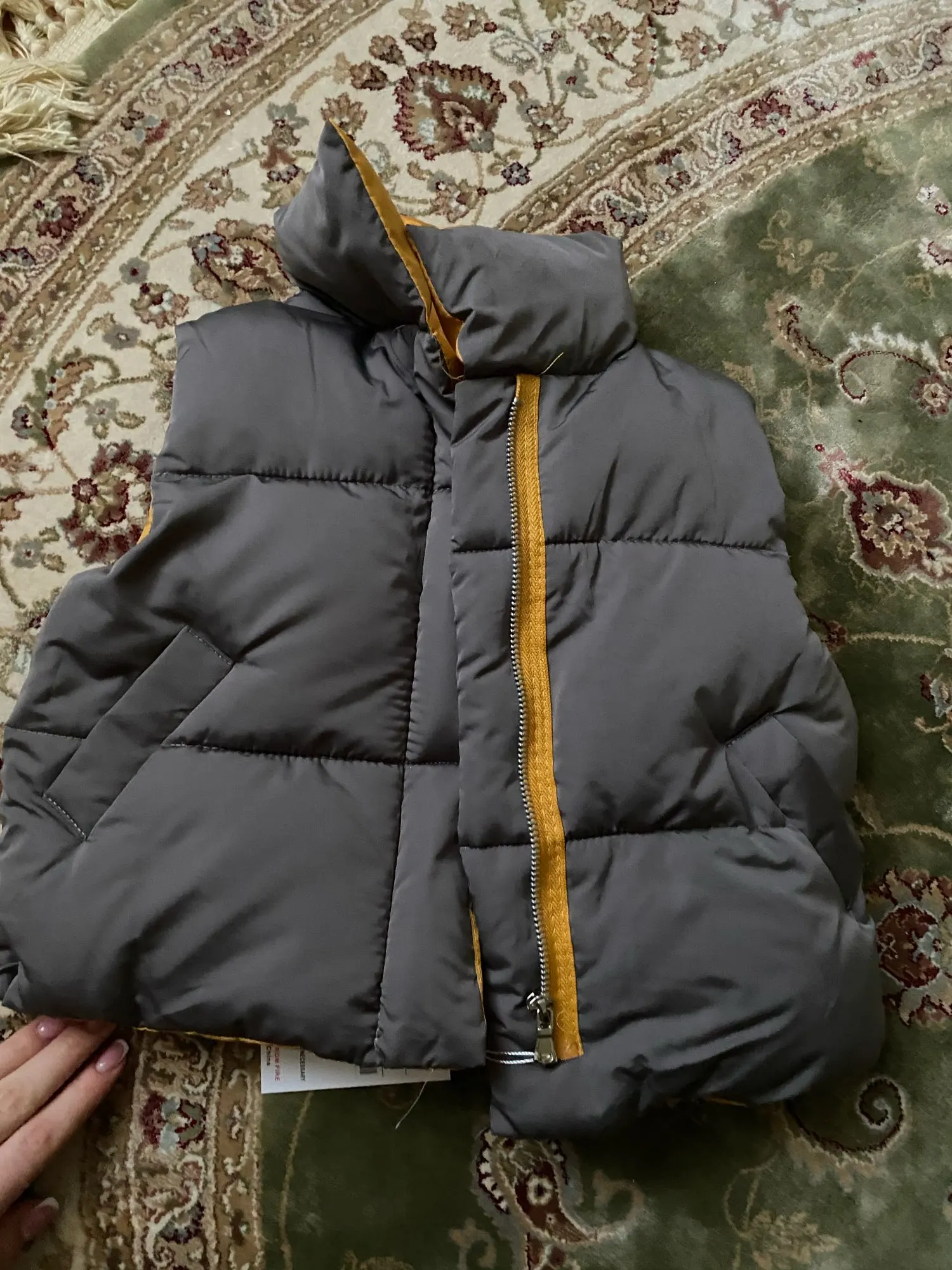 Хорошая жилетка, как в отзывах. Вышла на распродаже 11.11 за 590₽ за эти деньги вообще все шикарно. Ещё не мерили, но вроде размер подойдет. На рост 88 заказала 100 размер, но брала на весну и осень.