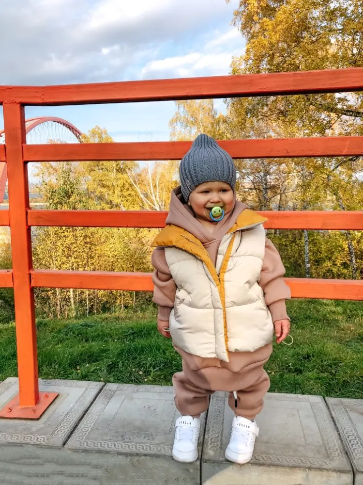 Нам очень понравилась жилетка, прияный цвет, качественная , нам 1г 6мес размер 3т великоват но это не страшно )) останется на следующую зиму )) у нас она +15. пришла в Сочи за 12 дней