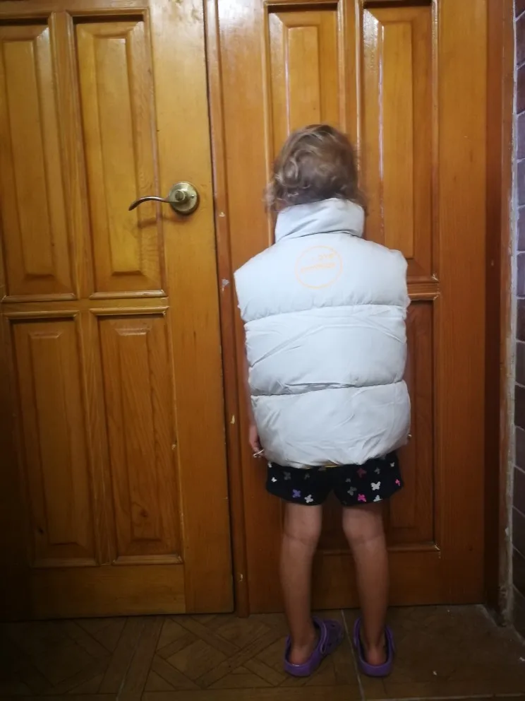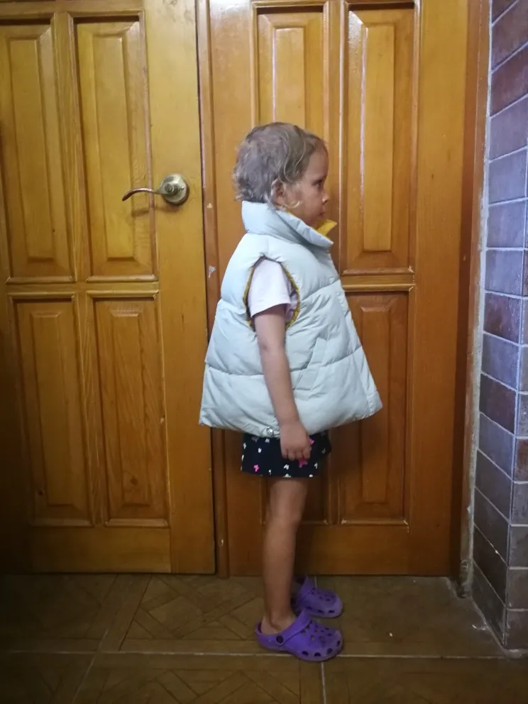 Две недели до Новороссийска. Рост 118см (почти 6 лет), по длине норм, по ширине с хорошим запасом. Жилет даже на мне застегнулся, ОГ 94))). Карманы глубокие, тёплый, стильный. Петельки внутри нет. Снизу можно подзатянуть. Молния до горлышка.