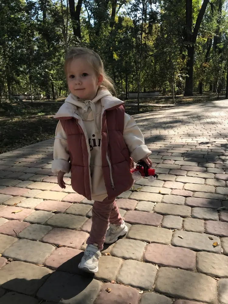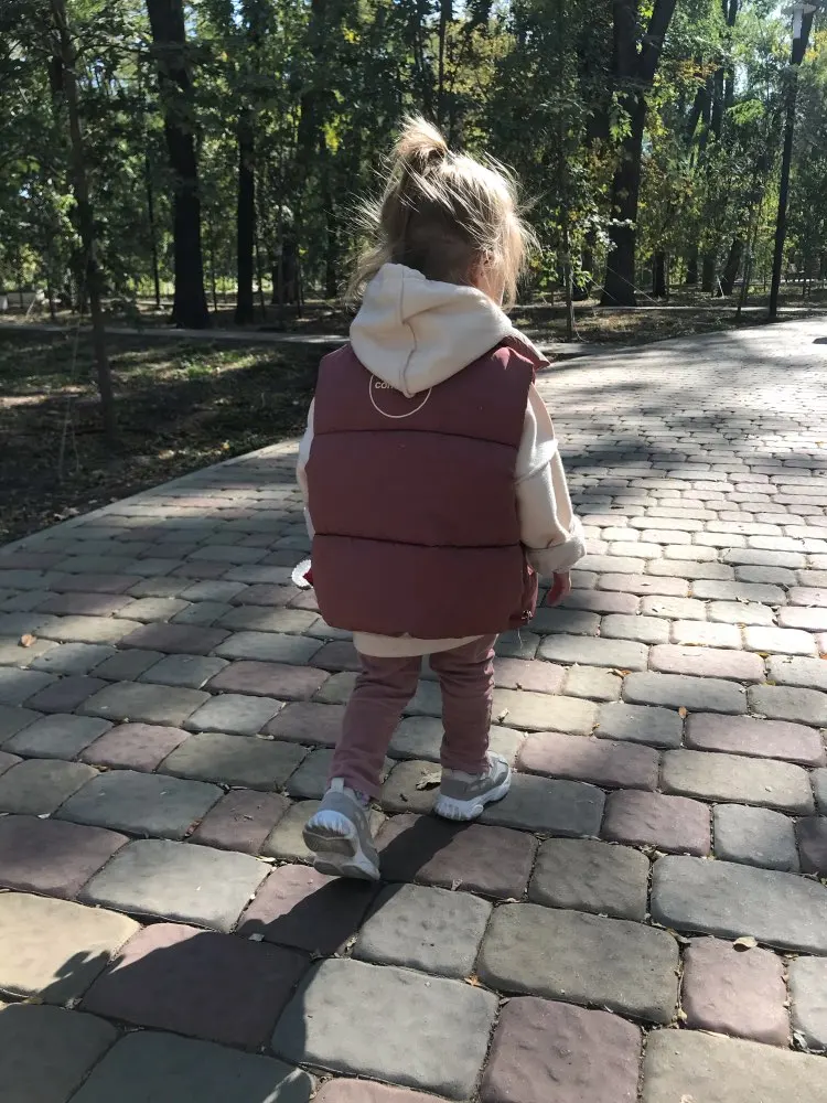 Этот жилет прекрасен, даже если бы я хотела придраться, не смогла бы. Ткань красивого припыленно-пудрово-бордового цвета, в общем не знаю какой это цвет, но факт, что он очень красивый) все строчки ровные, вид фабричной магазинной вещи. Дочка ростом 88 см, заказала ей размер 3т, что бы жилет был объемным и можно было носить с плотной толстовкой. Единственное он пачкается довольно быстро, это явно вещь не на каждый день, а скорее, что бы сходить в парк или тц, ну или же часто стирать) пришёл до Ростова-на-Дону примерно за 14 дней.