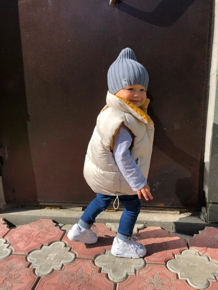 Шикарная жилетка. И визуально очень красивая и стильная, и исполнение отличное. Швы ровные, ниток нигде нет. За такие смешные деньги вообще топ-вариант! Заказала размер 100 на дочку 2х лет. Рост у дочки где-то 84см, вес 11.500. И сейчас на весну будет хорошо, и на осень, уверена, ещё подойдёт. Спасибо продавцу, отправил товар быстро и быстро всё пришло! Смело рекомендую