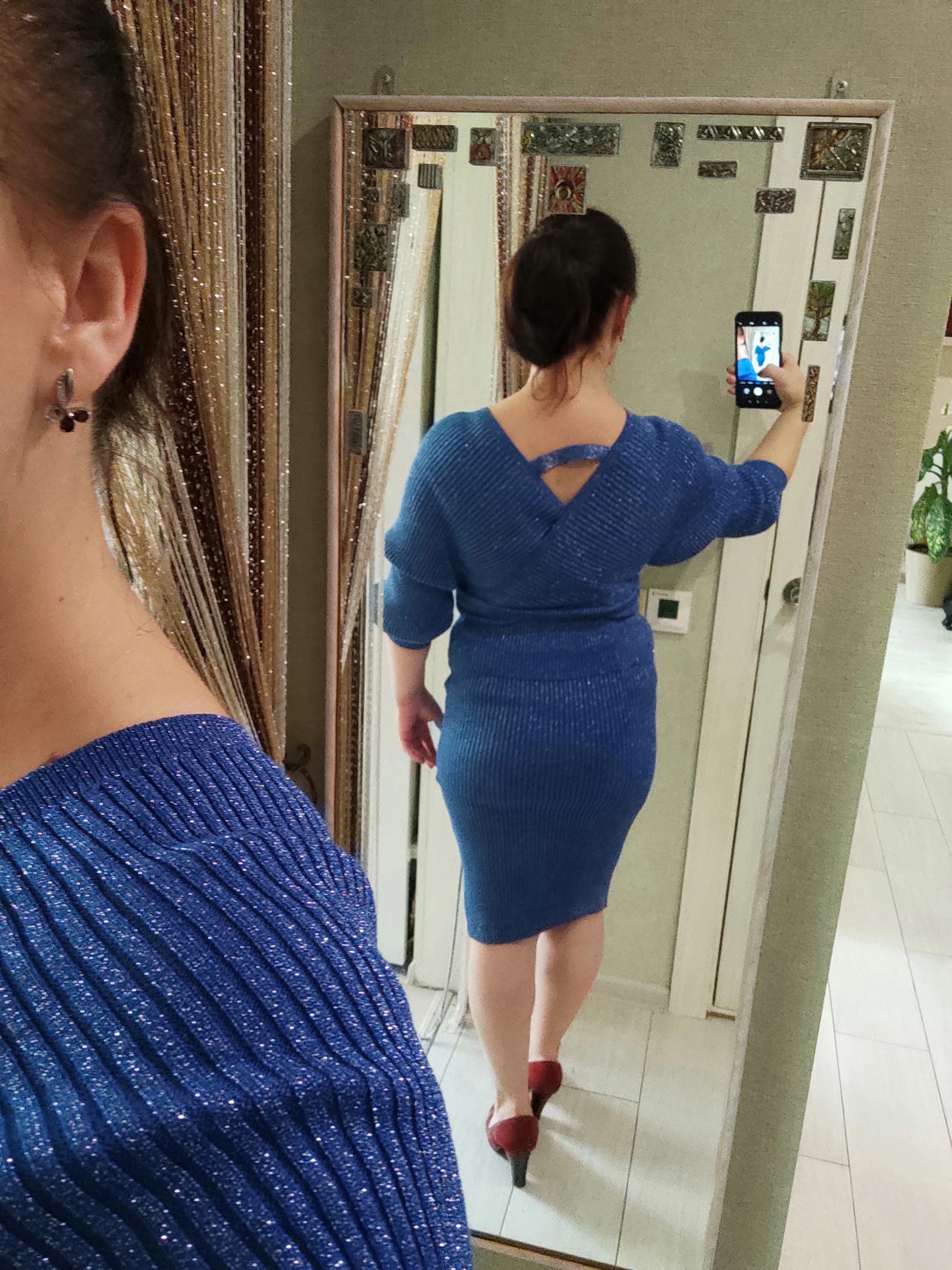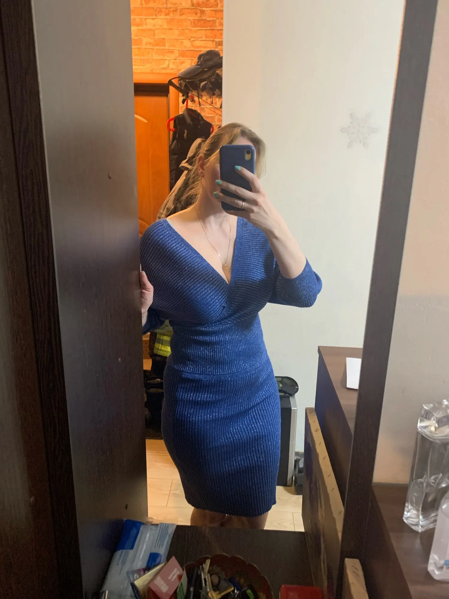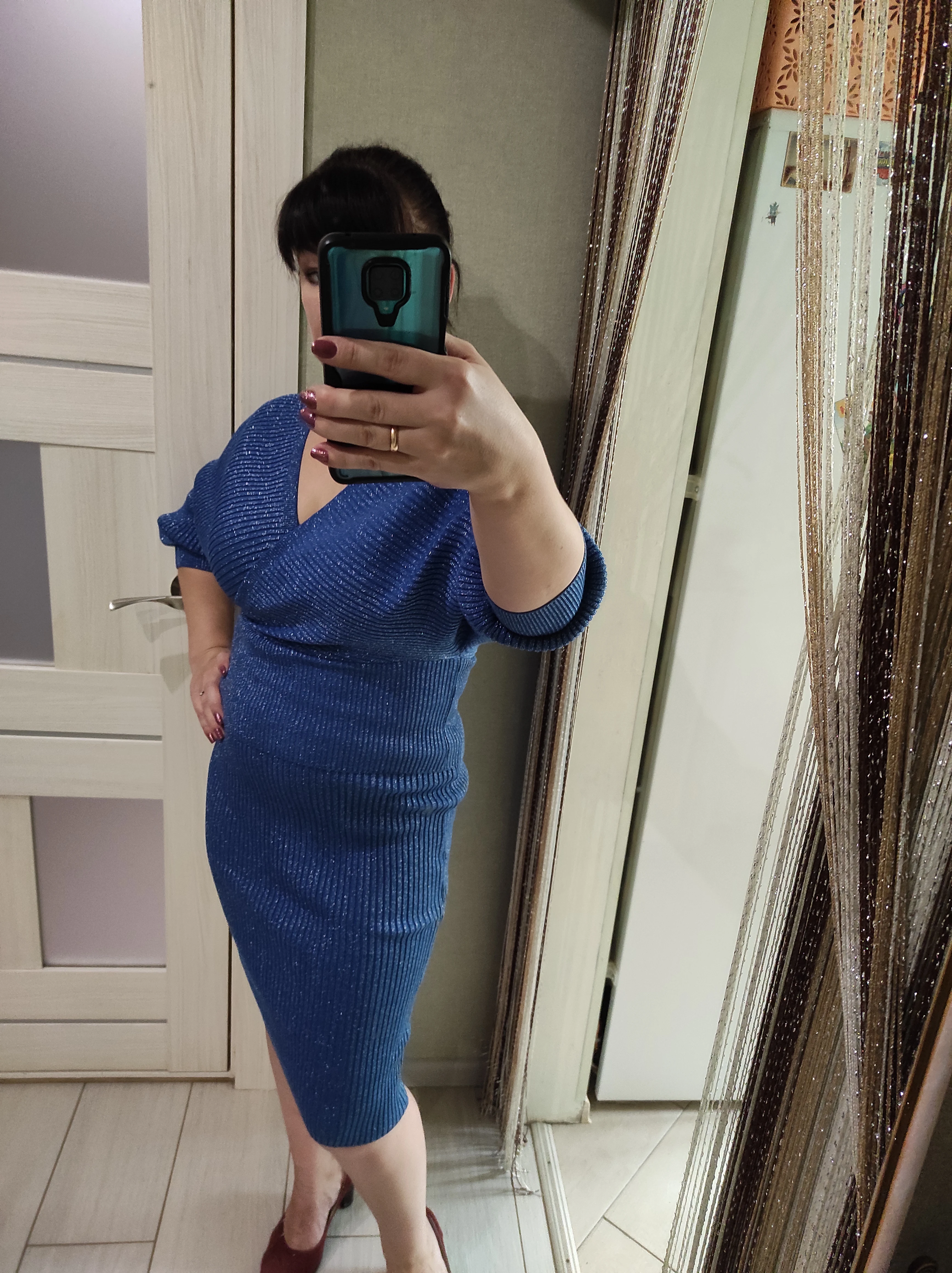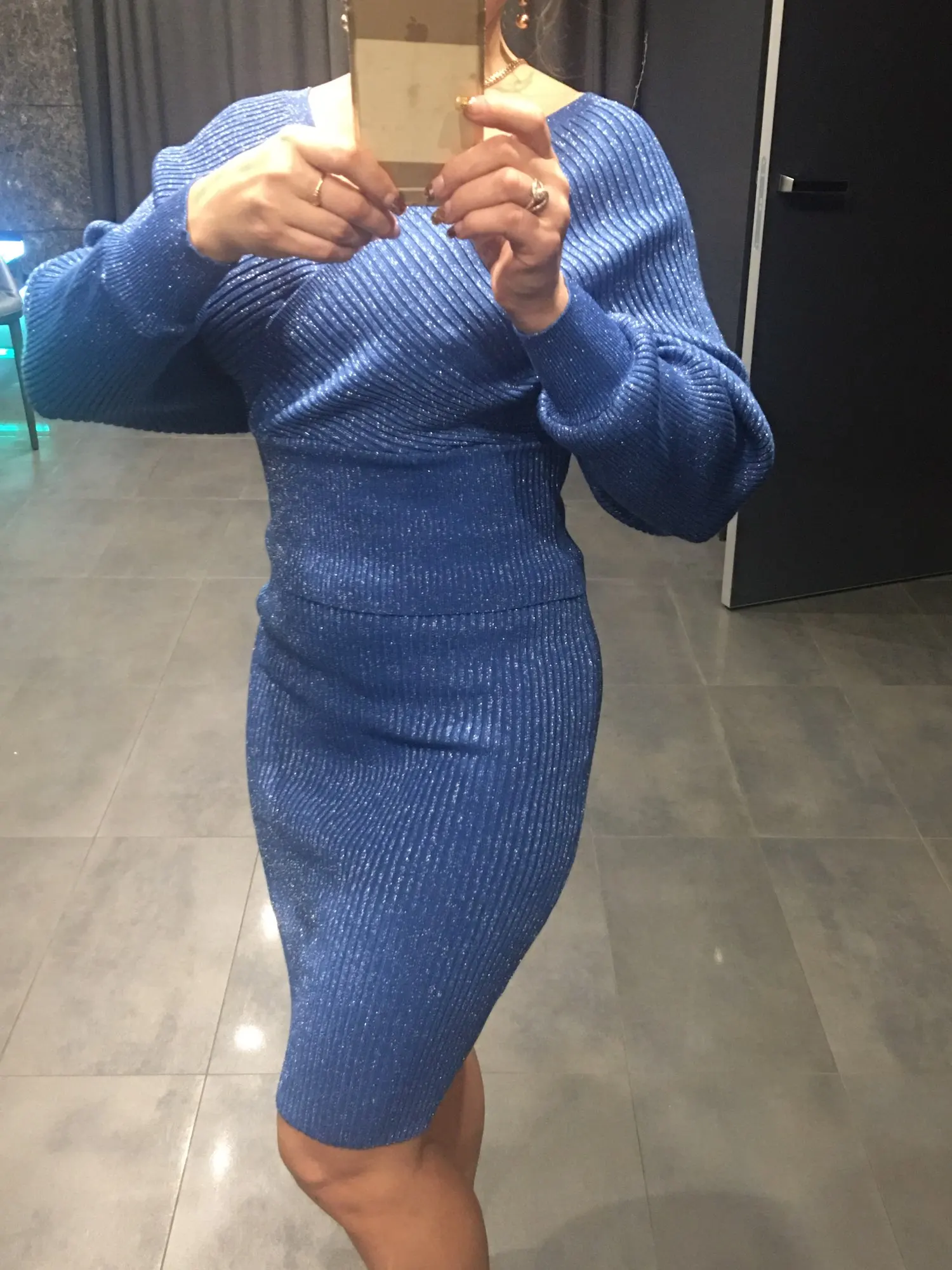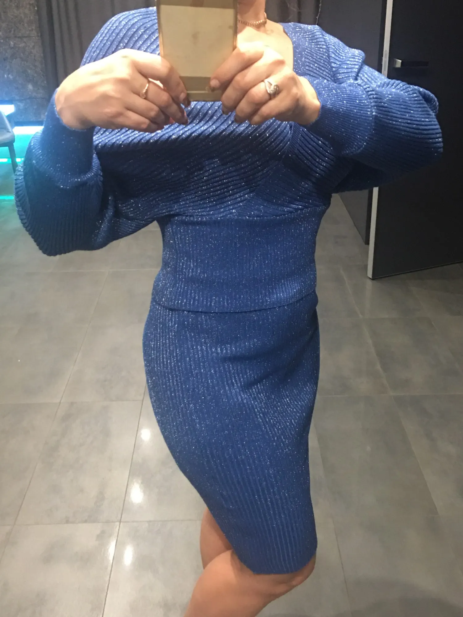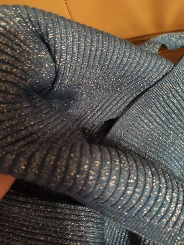 Хорошее качество, синие блестки L для 40, не красивые, если у нас слишком много живота, прибыл очень быстро