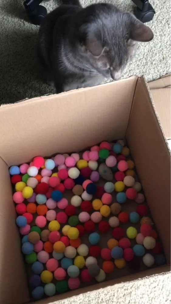 коту очень понравились эти шарики, он приносит их нам в зубах, чтобы мы их бросали.