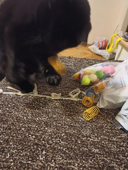 mega snel ontvangen in 2 weken naar NL grote ballen kat is er blij mee