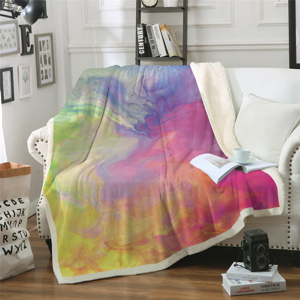 Постельное белье Outlet Мраморное шерпа одеяло Радуга микрофибра бросок одеяло Рок Камень трендовые манты Де Кама природа красочные постельные принадлежности