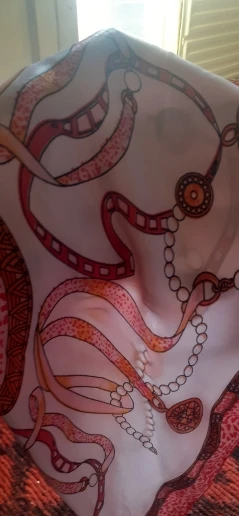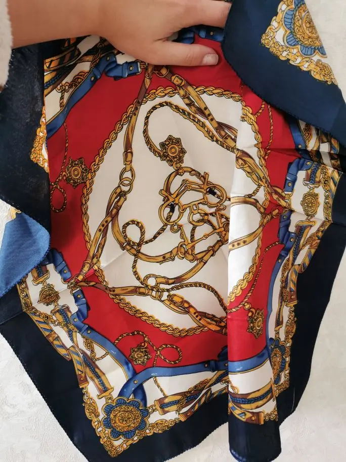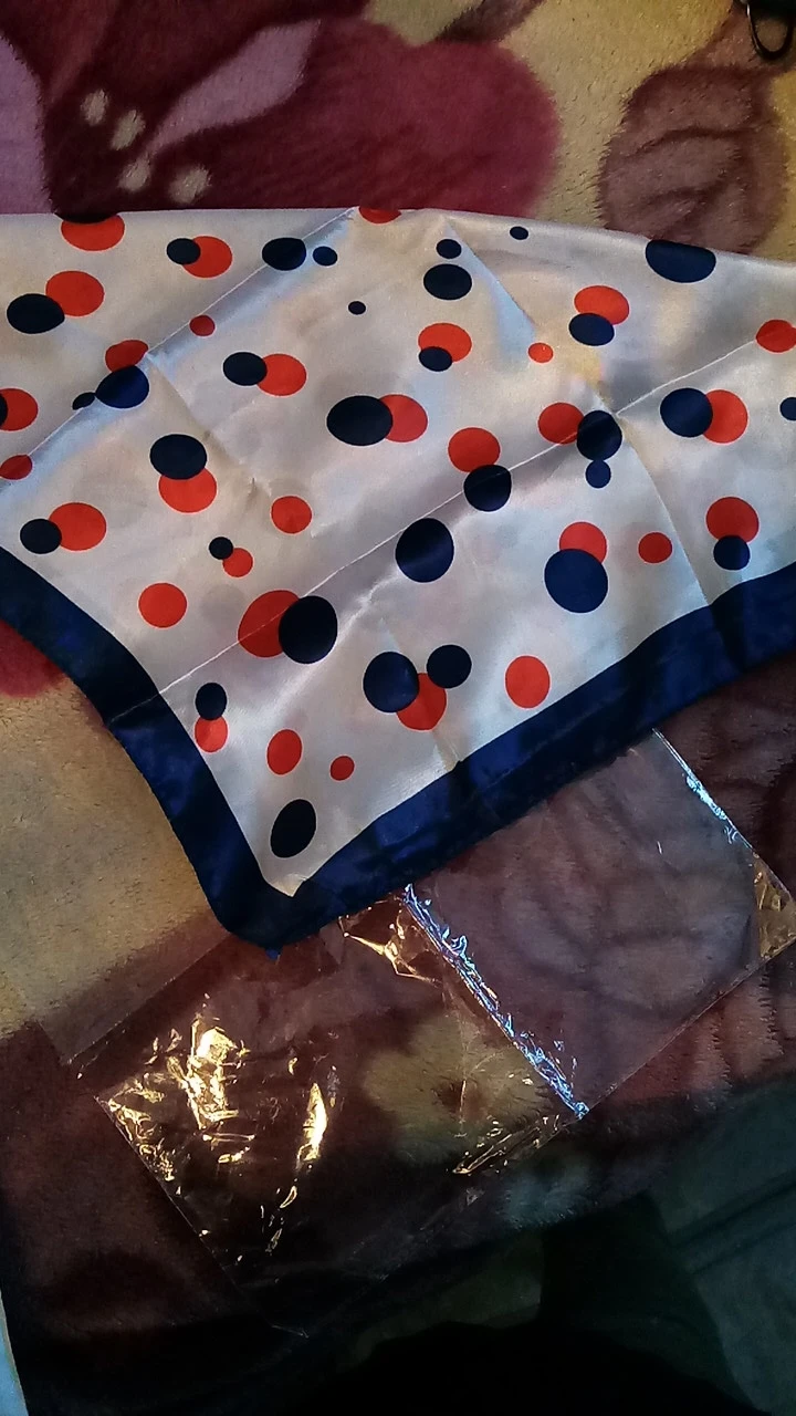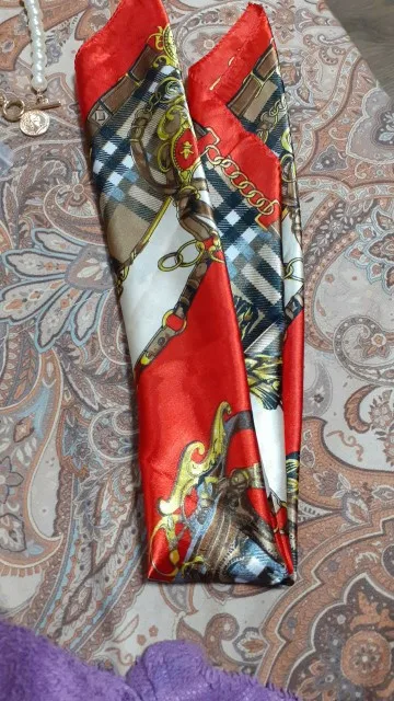 очень классный платочек, красивый принт, хорошее качество, ничего не торчит, ткань-шелк, пришёл за 3 с половиной недели до Астрахани.