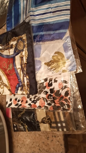 платочки шелковистые, смотрятся очень красиво. доставка быстрая. рекомендую.