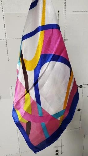 Посылка пришла быстро. Цвета яркие, но края подшиты неровно, местами стянуты, но в качестве шейного платка пойдёт