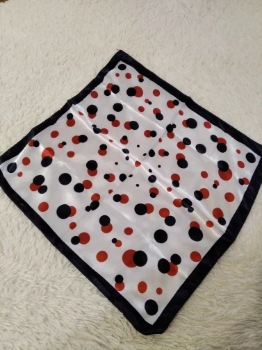 Шарфик хороший. Сшит качественно. Блестит как атлас. Выбрала такую расцветку, потому что сразил горошек! Необычный и весёлый. Спасибо! Всем добра!
