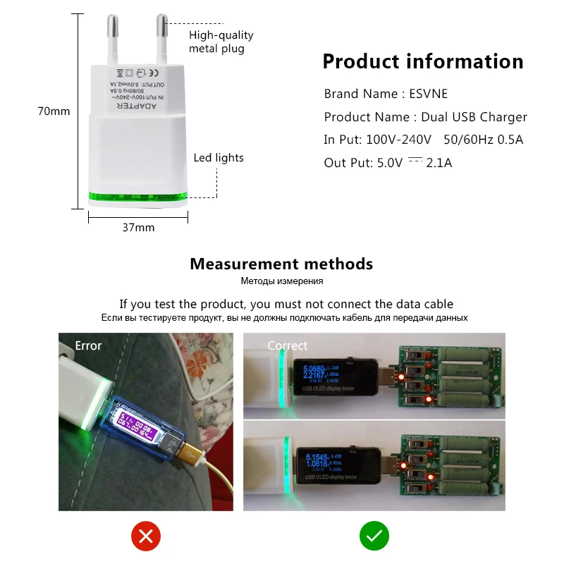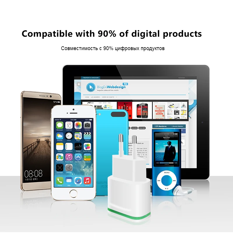 Штепсельная Вилка европейского стандарта, зарядное устройство с 2 U...