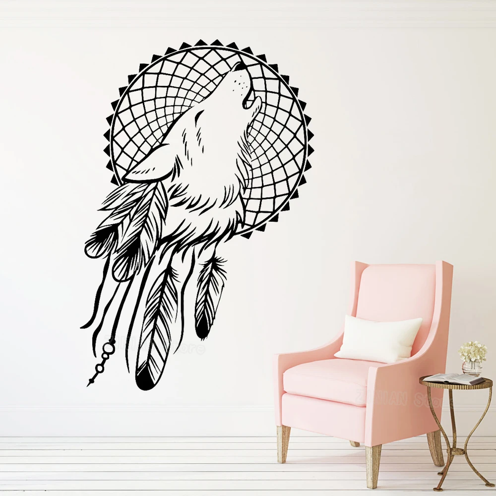 Волк и перья, настенная наклейка, креативная настенная наклейка, символ сна, домашний интерьер, декор для спальни, гостиной, Фреска LW167