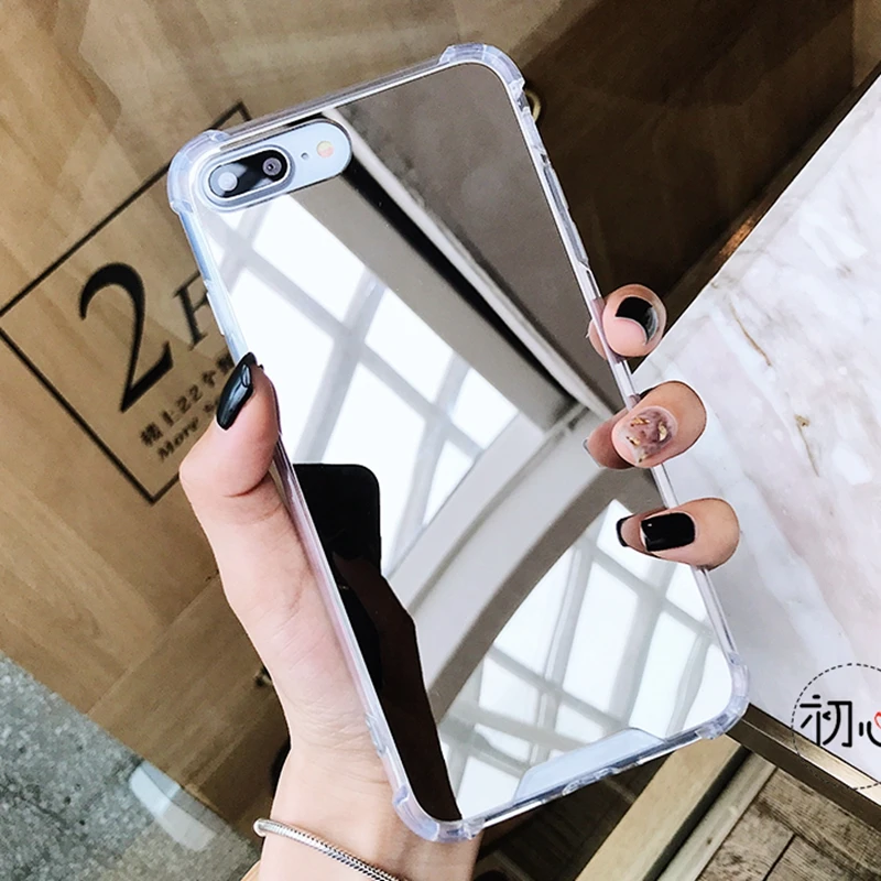 Роскошный мягкий чехол с зеркалом для макияжа ударопрочный чехол для iPhone X XS Max XR 8 7 6 6S Plus задняя крышка резиновый кристальный чехол для iphone 7 Plus