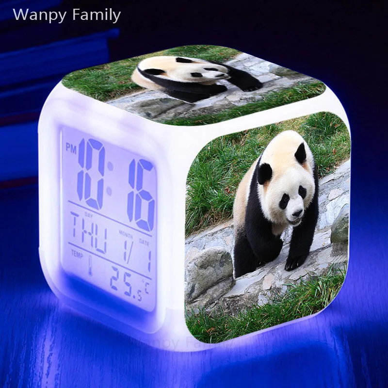 Милые Гигантские панды Будильник 7 цветов светящиеся светодиодные М...