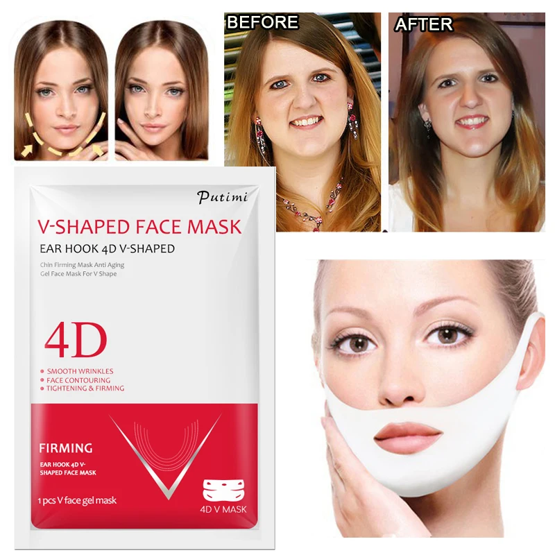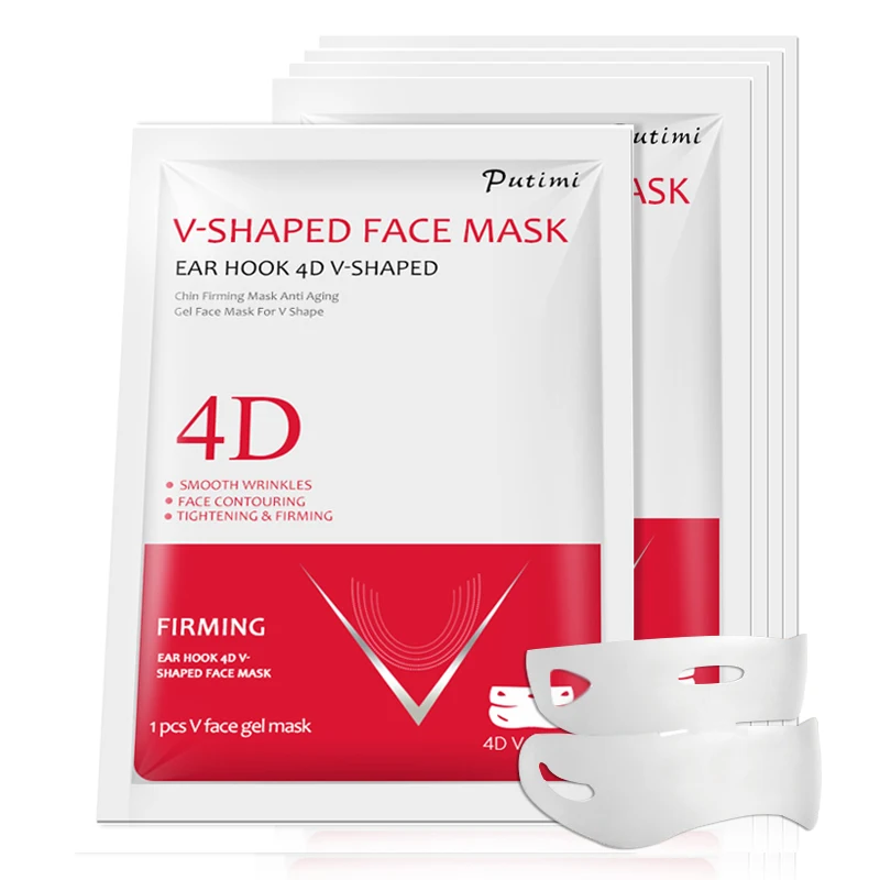 PUTIMI 4D двойная V-образная маска для лица, подтягивающая ушной крючок, Гидрогелевая V-линия, листы для лица, маска для похудения, подтяжки подбородка и шеи, против морщин