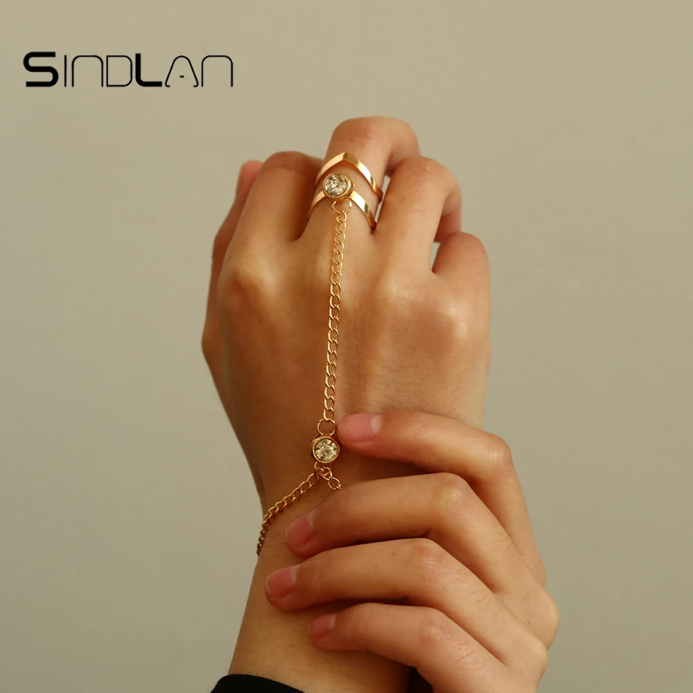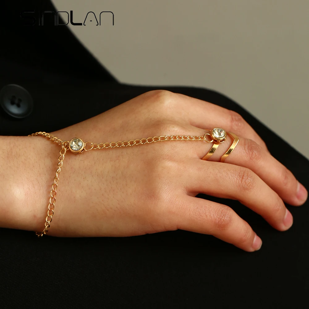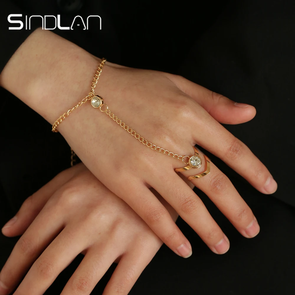 Браслет женский Sindlan с большим золотым кристаллом, цепочка на запястье, ювелирные изделия