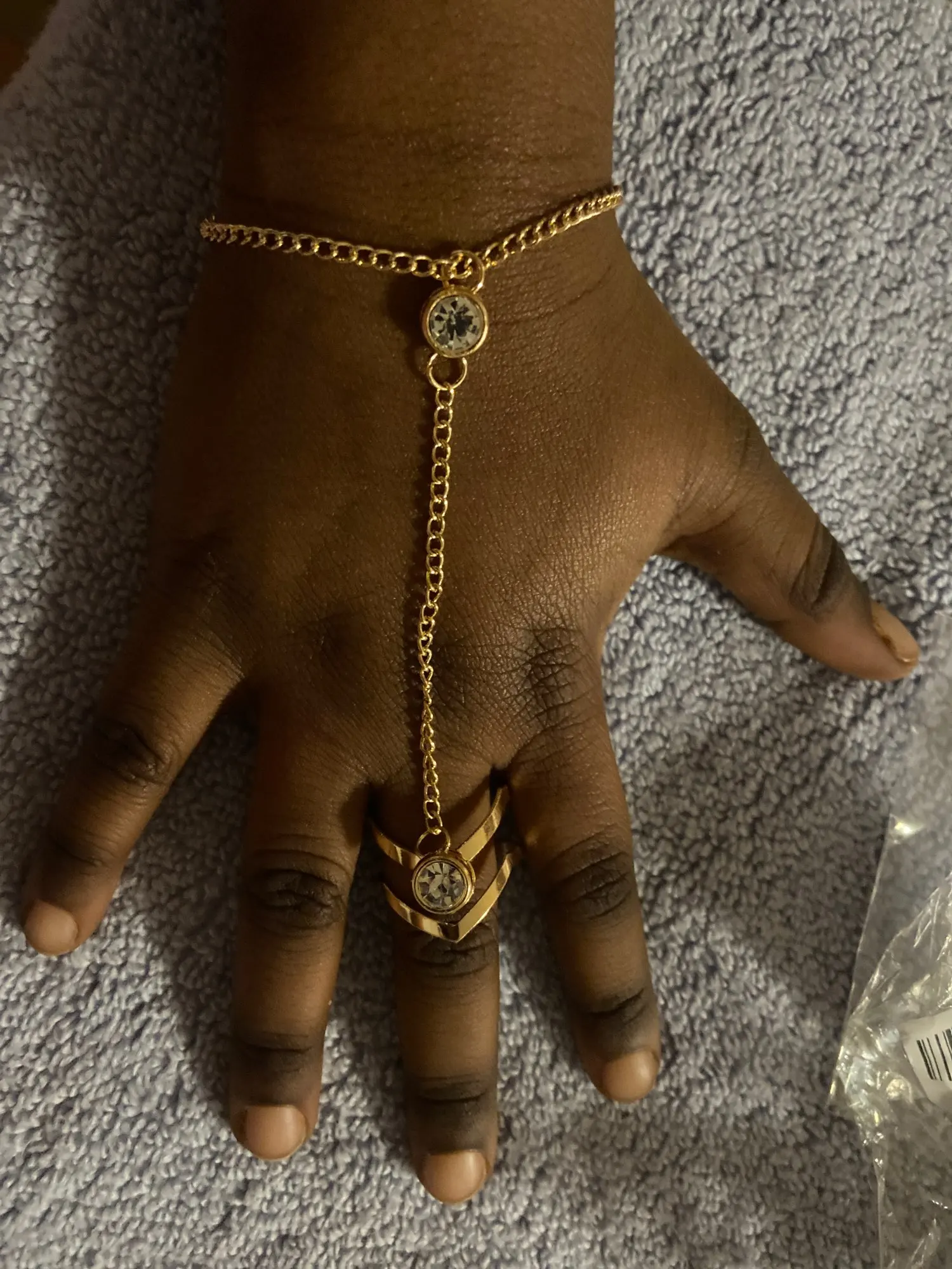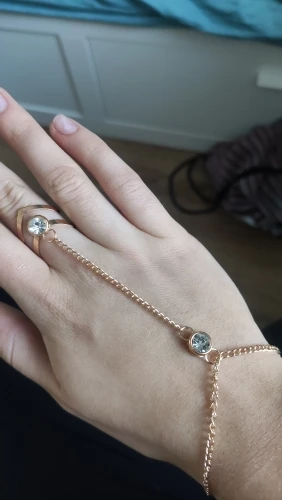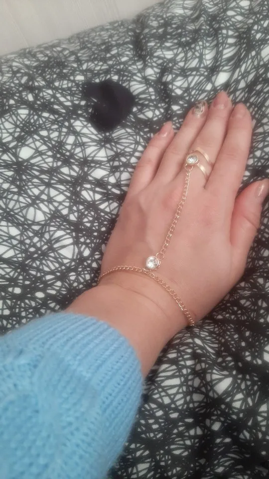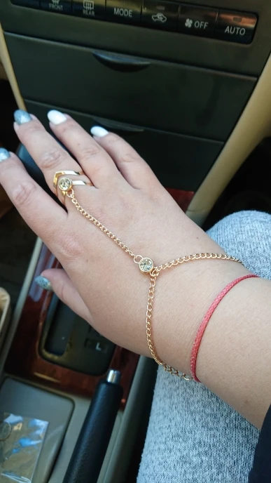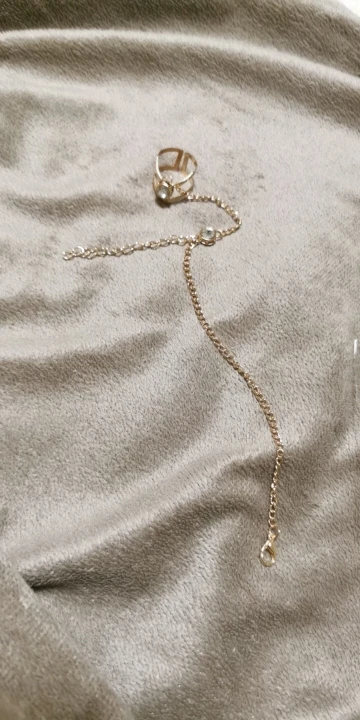 Цепочка, которая соединяется с кольцом, конечно, перекручивается, лежит криво, но выглядит красиво. Разделю и буду носить по отдельности, браслет хорошо смотрится на ноге