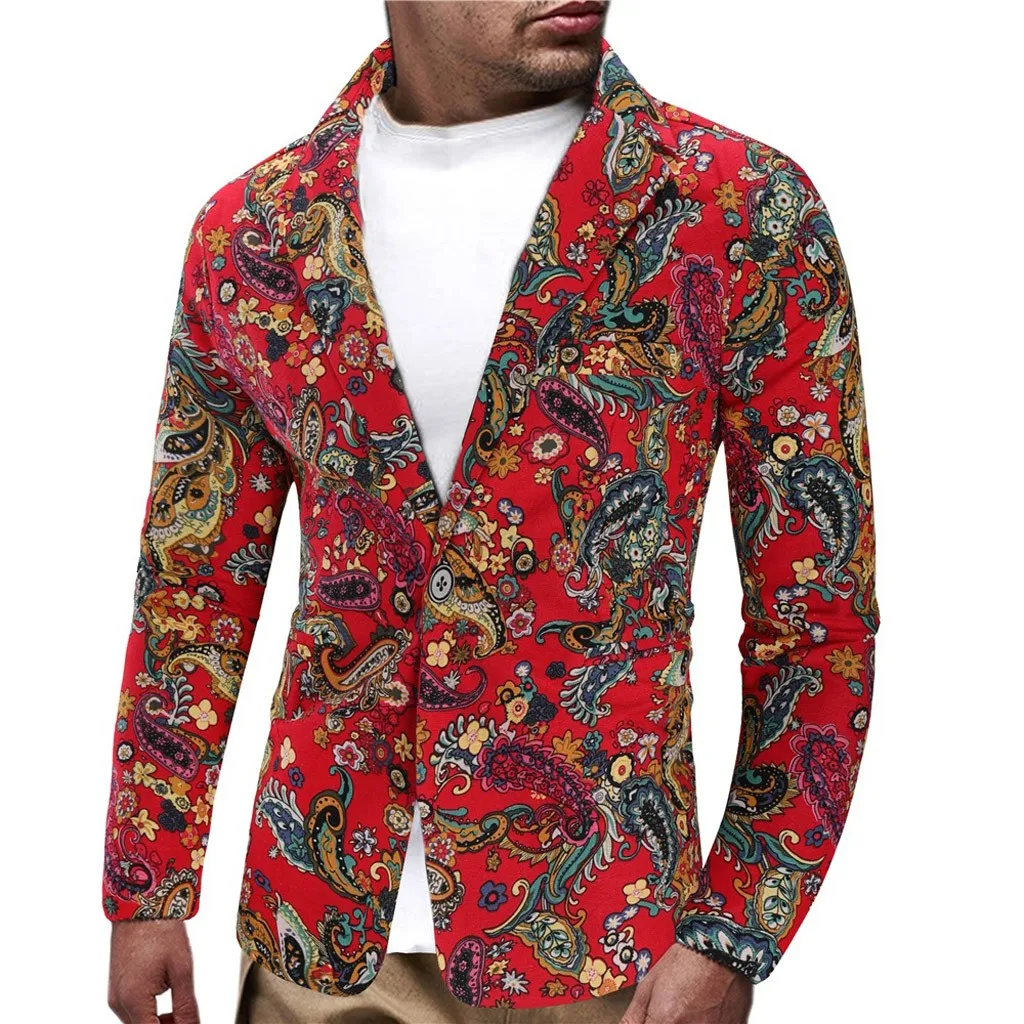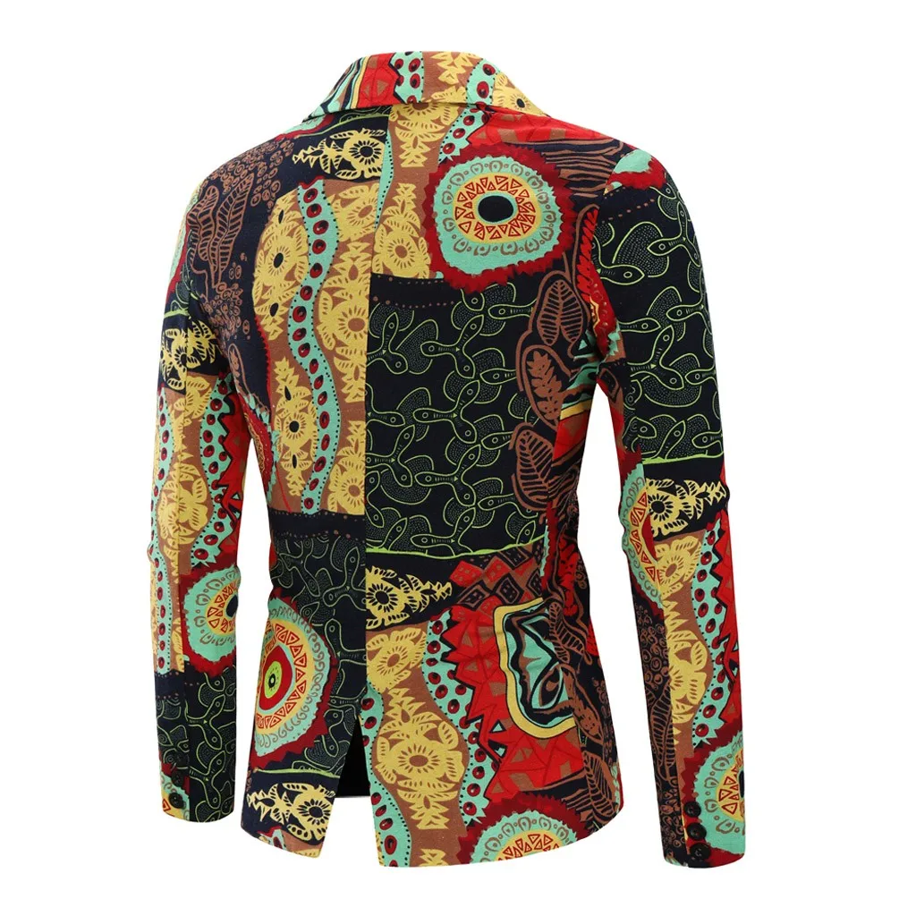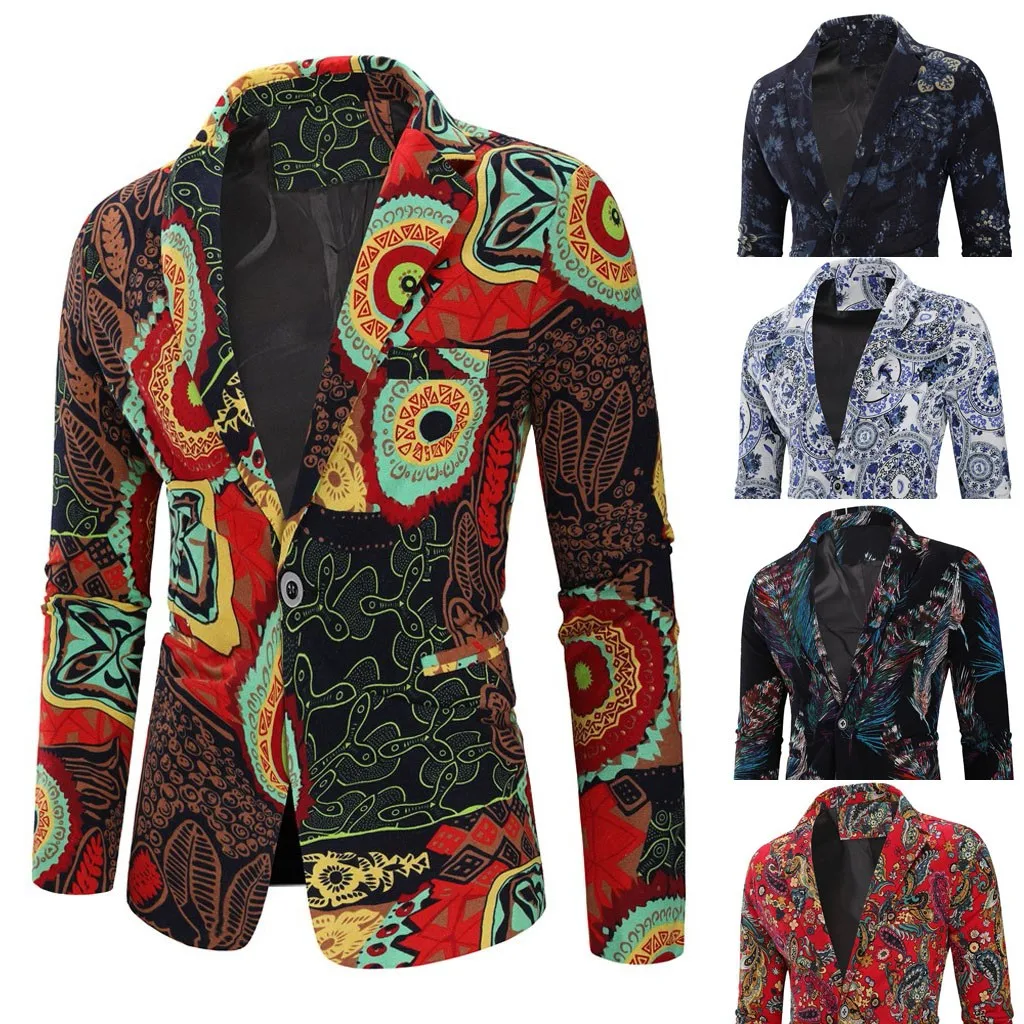 Мужское винтажное платье с этническим принтом, приталенный Блейзер с цветочным принтом, осенняя тонкая куртка, Прямая поставка, 2019