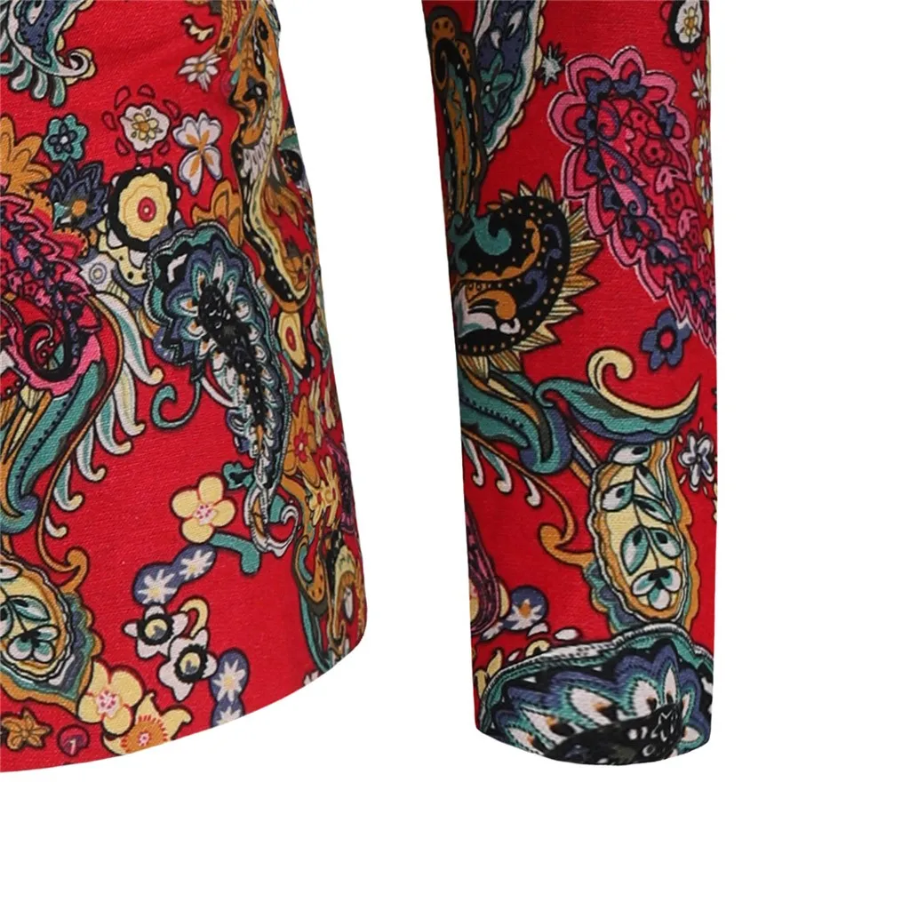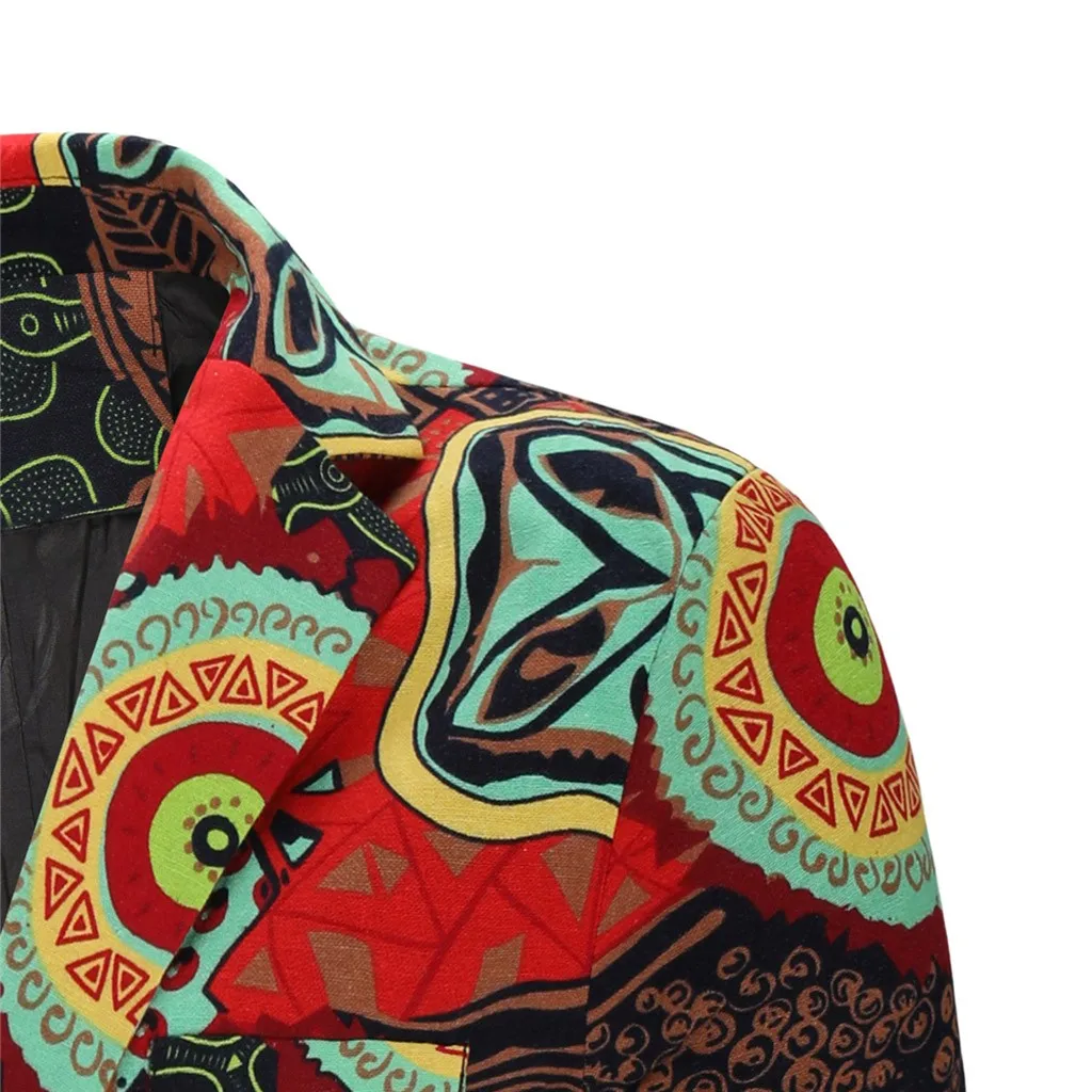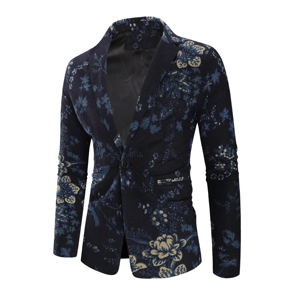 Мужское винтажное платье с этническим принтом, приталенный Блейзер с цветочным принтом, осенняя тонкая куртка, Прямая поставка, 2019