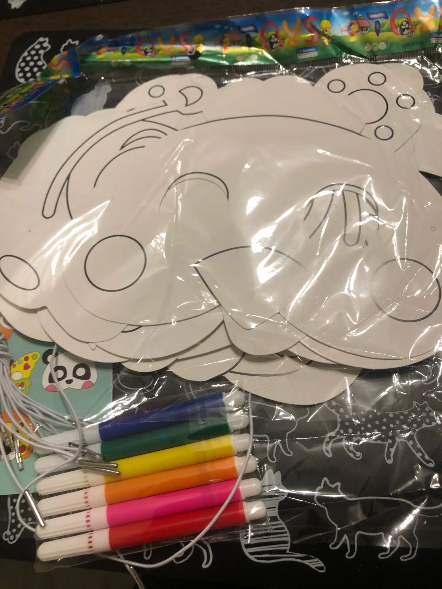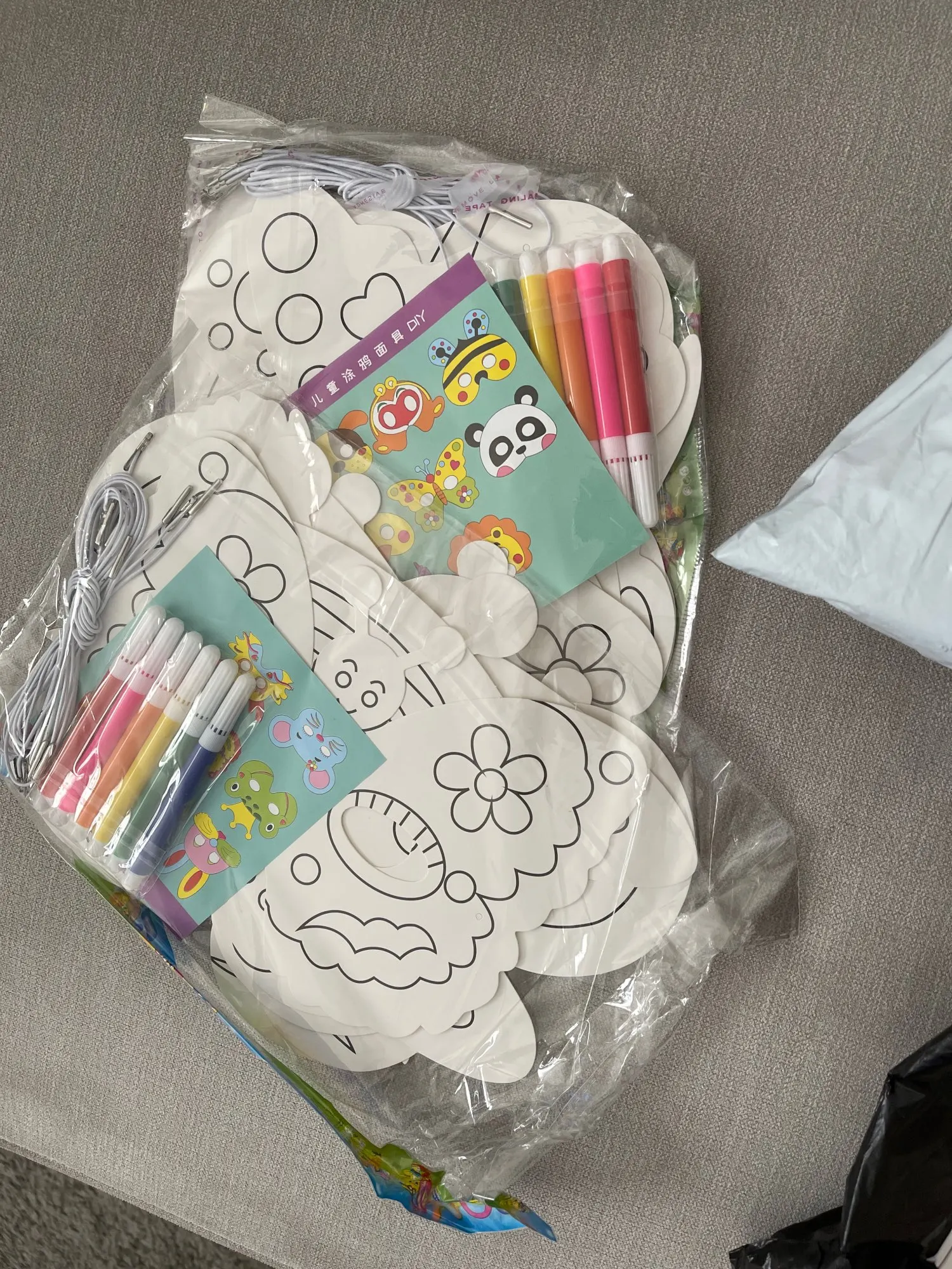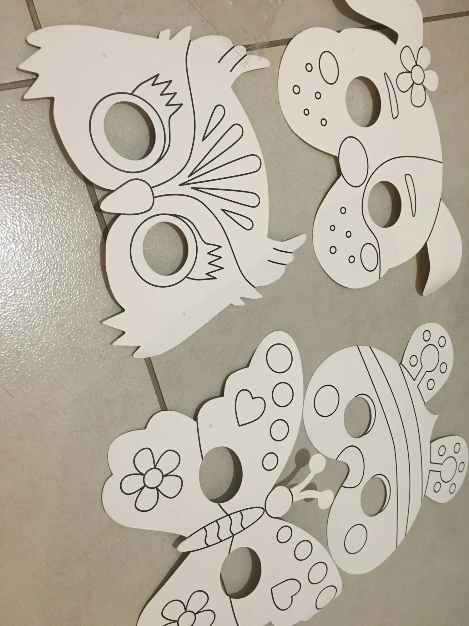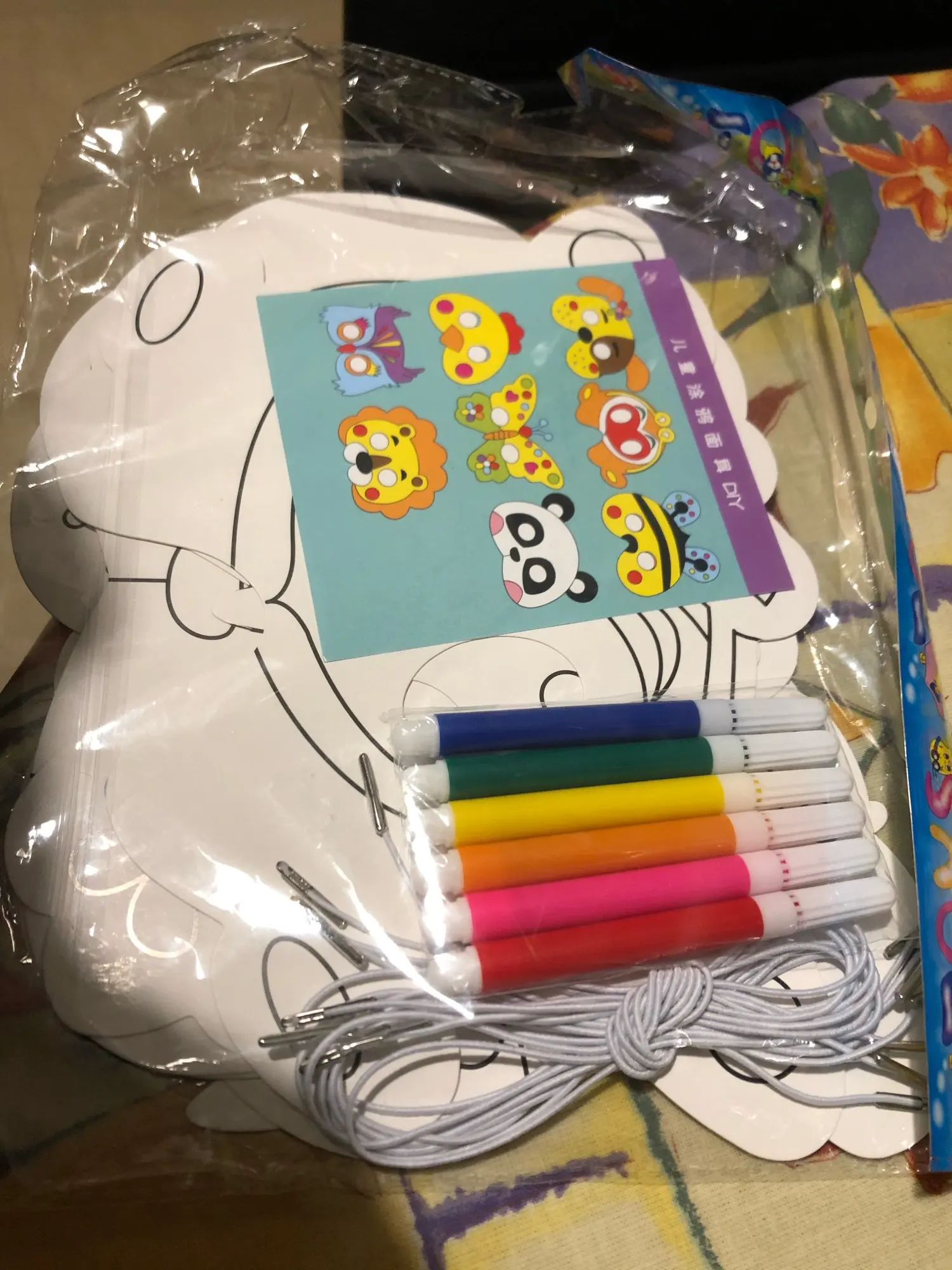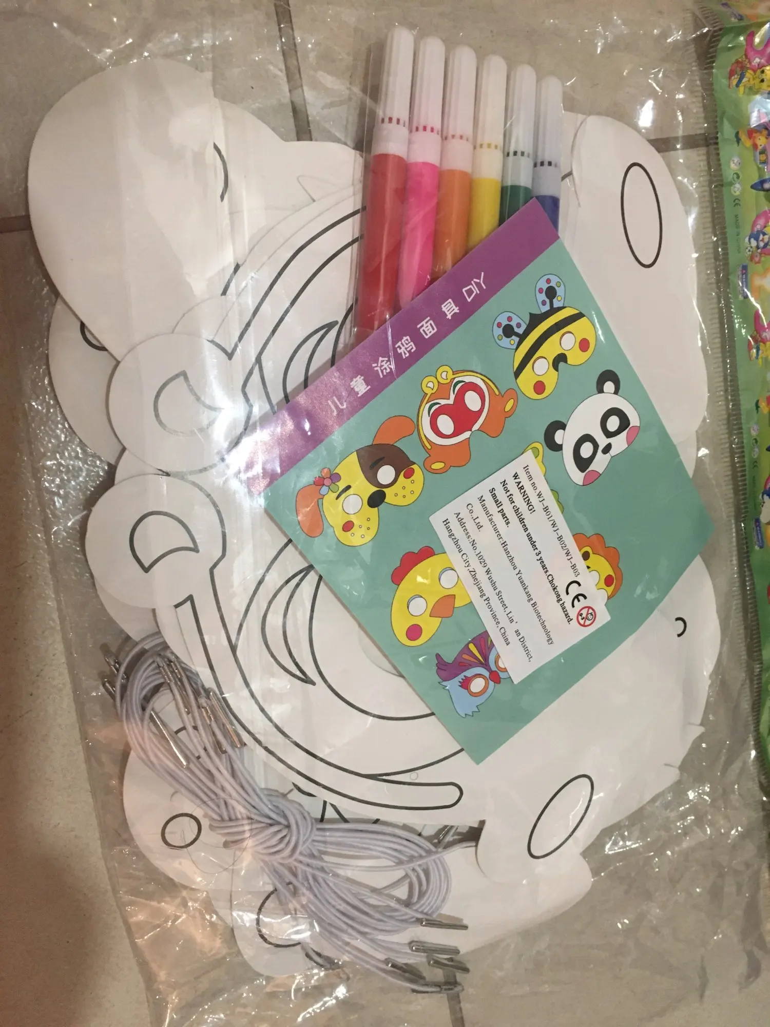 Быстрая отправка и доставка. В комплекте маски из плотного картона, резиночки и маленькие фломастеры. Качество супер!!! Спасибо продавцу!