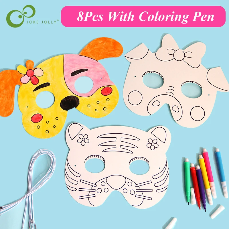 Маска с мультяшными животными для самостоятельного творчества, цветные художественные игрушки для детского сада, граффити, творческие игрушки для рисования для детей, GYH, 8 шт.