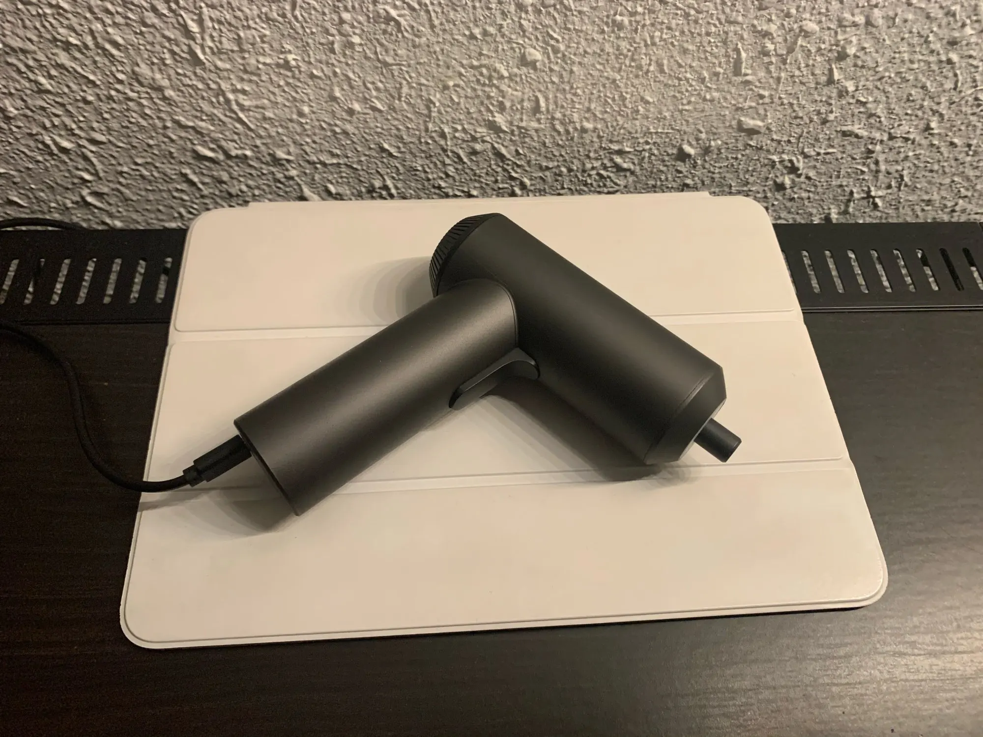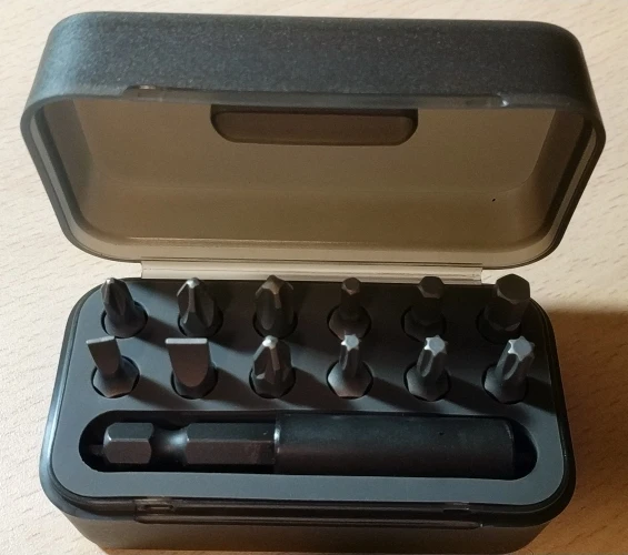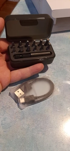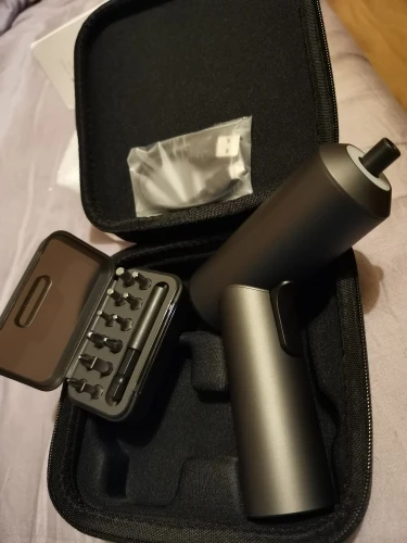 Очень красивый дизайн и отличное качество. Он поставляется внутри идеального маленького футляра, чтобы носить его с собой, где подходит отвертка, чехол с 12 адаптерами и очень коротким usb-c кабелем для зарядки d (30 см). Идеальная мощность для винта любого винта. Доставка занимает почти 1 месяц.