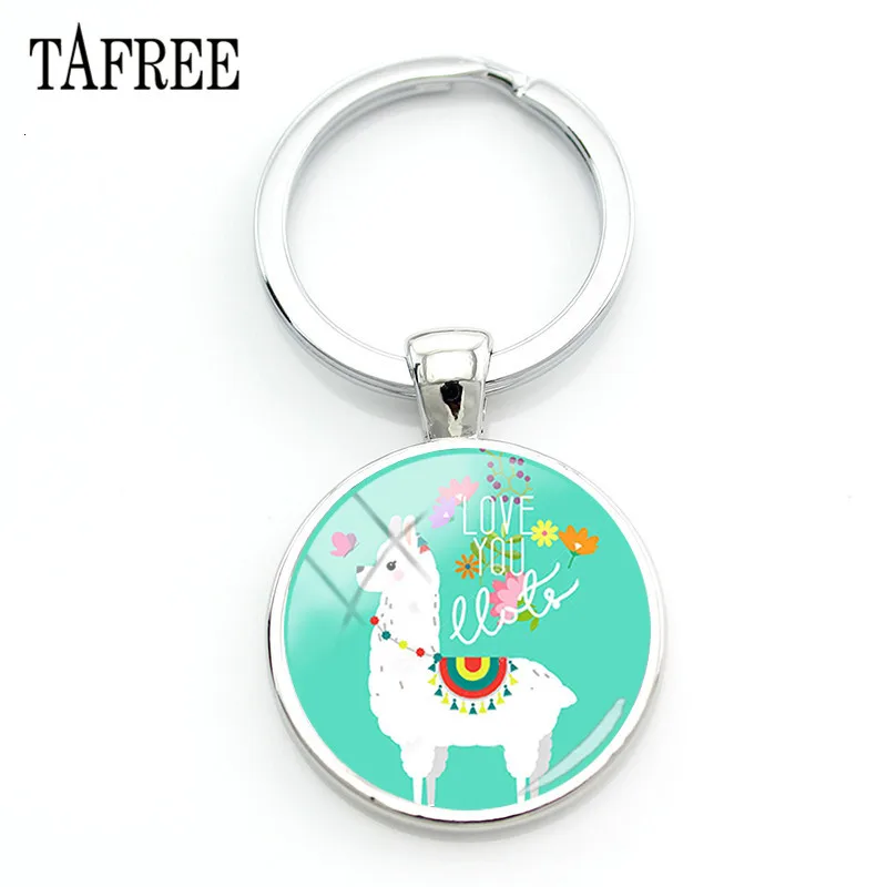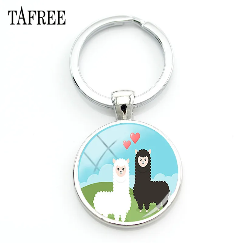 TAFREE, Новое поступление, брелки из альпаки, брелки для ключей, стеклянные, с изображением ламы, животных, Очаровательные Брелки для детей, подарок, YT52