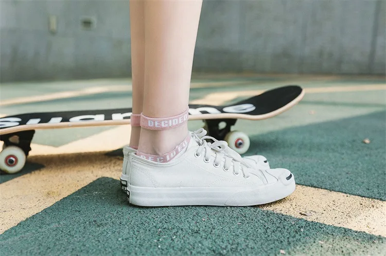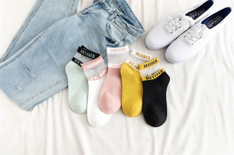 Модные женские хлопковые шелковые короткие носки в Корейском стиле, яркие цветные кружевные повседневные Дышащие носки с буквами, 1 пара