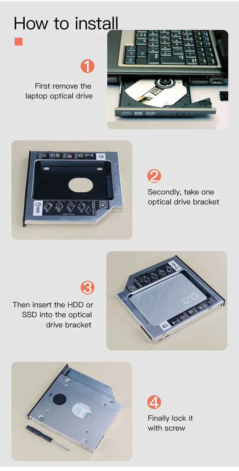 Алюминиевый корпус для жесткого диска DM DW95S 9,5 мм, Optibay SATA 3.0